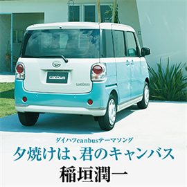 ダイハツ自動車 新型車ムーヴキャンバスのTVCMでお茶の間に流れ、話題となっている稲垣潤一の未発表曲がデジタル限定でリリース決定しました。