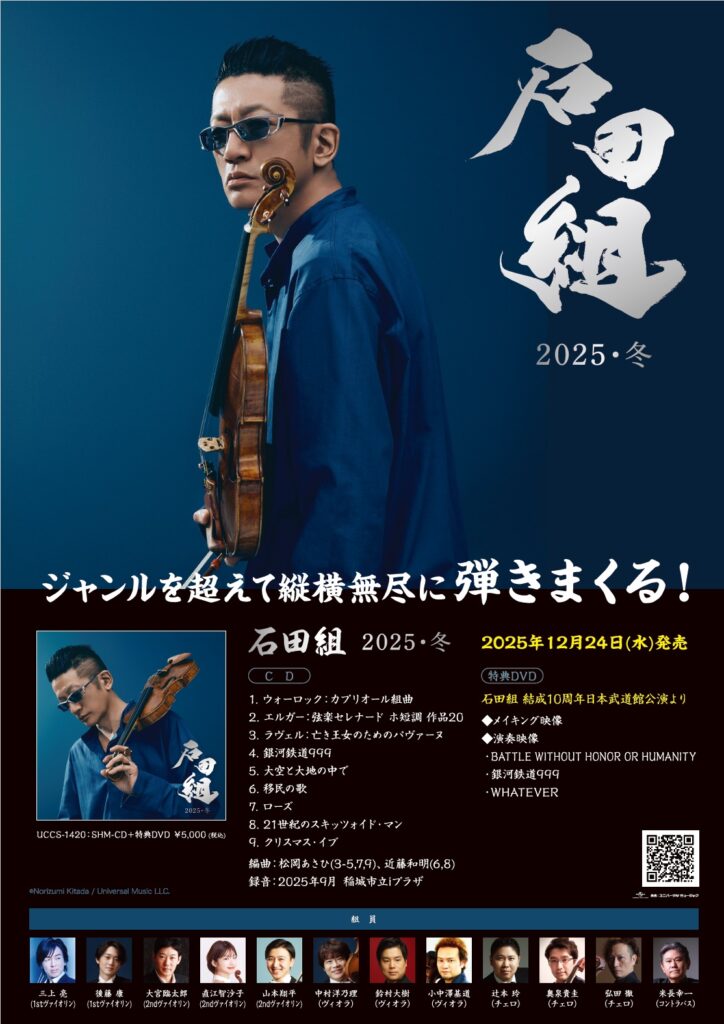 ヴァイオリニスト、石田泰尚率いる「石田組」の新アルバム『石田組 2025・冬』が発売されることが発表された。
