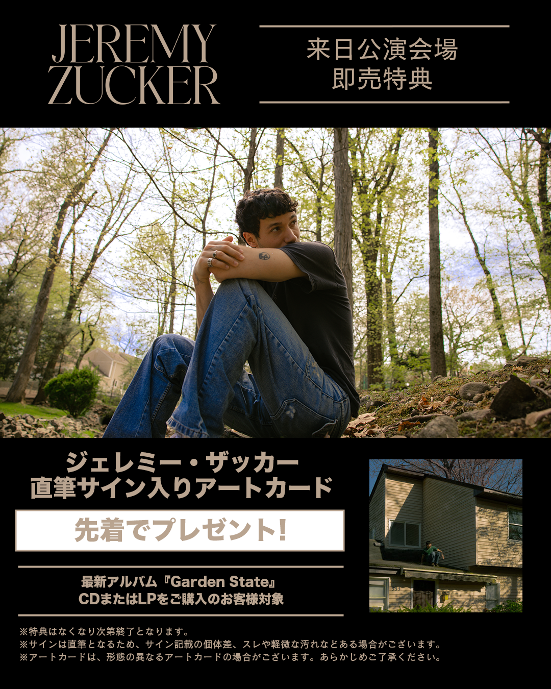 WHAT'S NEW 2025.12.03 TOPICS ジェレミー・ザッカー来日2025 即売特典が発表! 2025.11.10 TOPICS ジェレミー・ザッカー来日公演予習プレイリストが公開! 2025.08.22 TOPICS ニュー・アルバム『Garden State』リリース! MORE