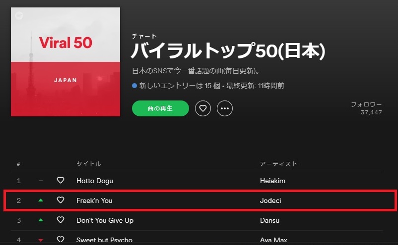 「Freek’n You」がSpotify「バイラルトップ50」デイリー・チャート2位! 2018.10.31 TOPICS アニメ『ジョジョの奇妙な冒険 黄金の風』のエンディング曲で話題のJODECI(ジョデシィ)の「Freek’n You」がSpotify「バイラルトップ50」にてデイリー・チャート2位(10月27日、29日付)!! ウィークリー4位獲得!! ▼ Jodeci「Freek’n You」 はこちら