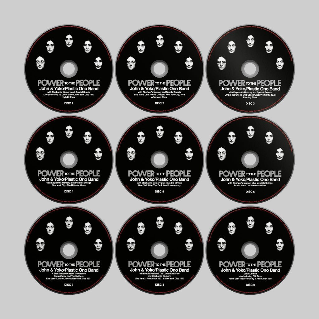 『パワー・トゥ・ザ・ピープル』のデラックス・エディションは、9枚のCDと3枚のブルーレイ・オーディオで構成。それらは銀箔を使用したタイトル部分と、ジョンとヨーコの顔が重なり合ってダイナミックな3D効果を生むレンチキュラー・プリントのカヴァーが特徴的な10インチの特注スリップケースに収納される。また、パッケージのロゴとカヴァーのデザインはリズ・ハーシュが担当した。各ディスクはジョンとヨーコそれぞれの肖像をあしらった2つの見開き式スリーヴに収納され、それらのスリーヴは”POWER TO THE PEOPLE”のロゴがプリントされた頑丈な透明の筒形スリーヴケースに収められる。