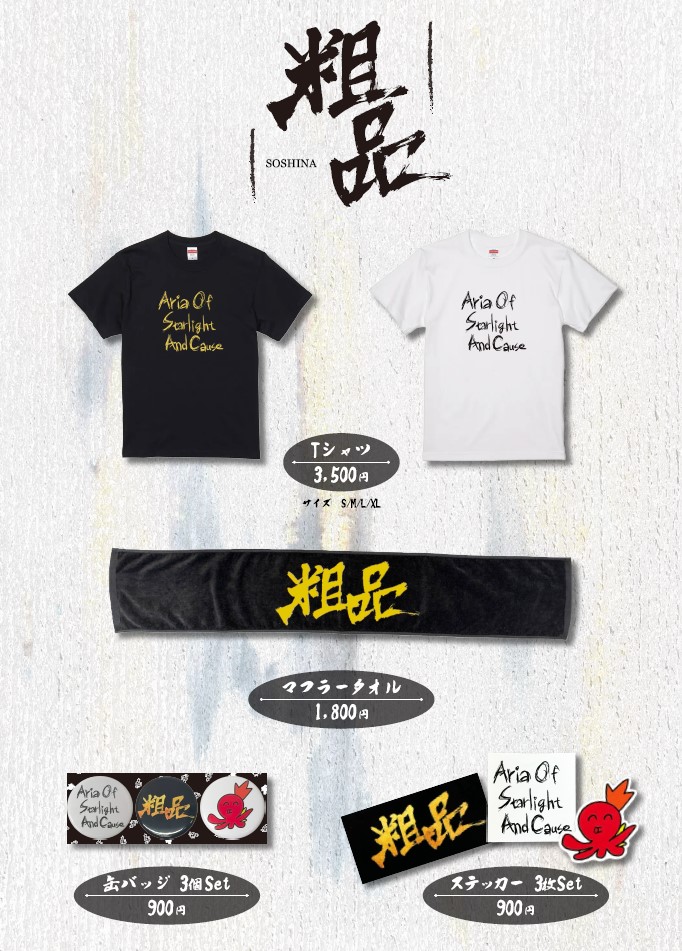 粗品 1st ツアー『星彩と大義のアリア』 ツアーGOODS決定!
