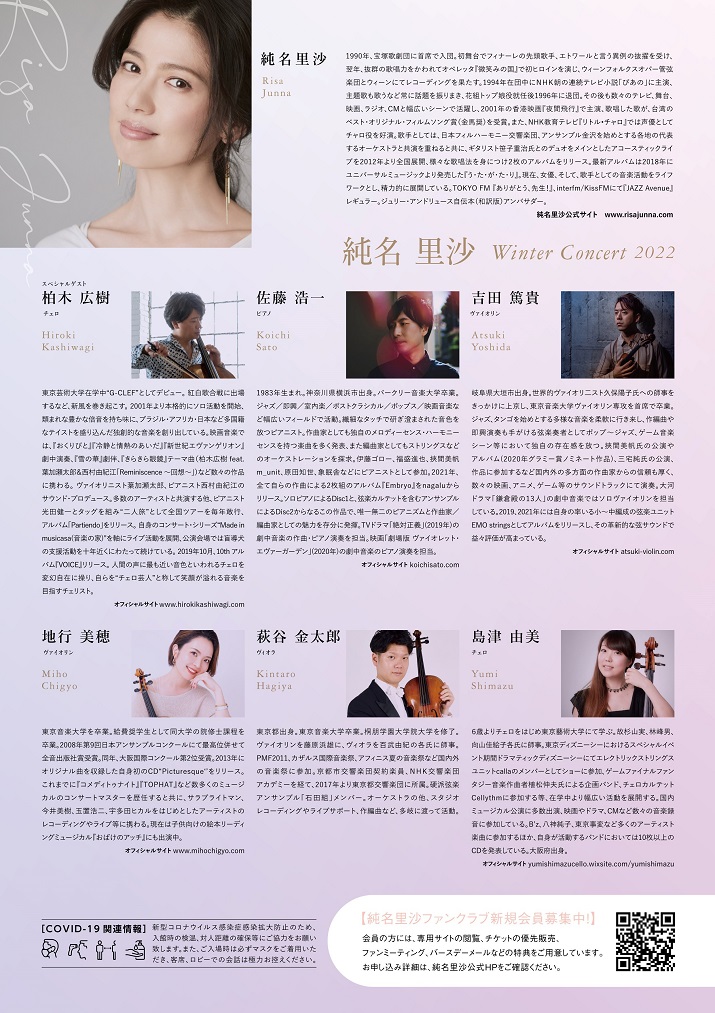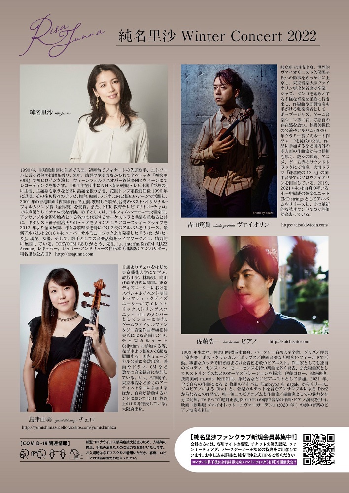 出演:純名里沙(歌)、佐藤浩一(ピアノ)、吉田篤貴(ヴァイオリン)、島津由美(チェロ)