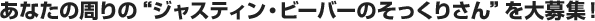 このたび、アルバム発売に向けて、“ジャスティン・ビーバーのそっくりさん”を大募集しました。