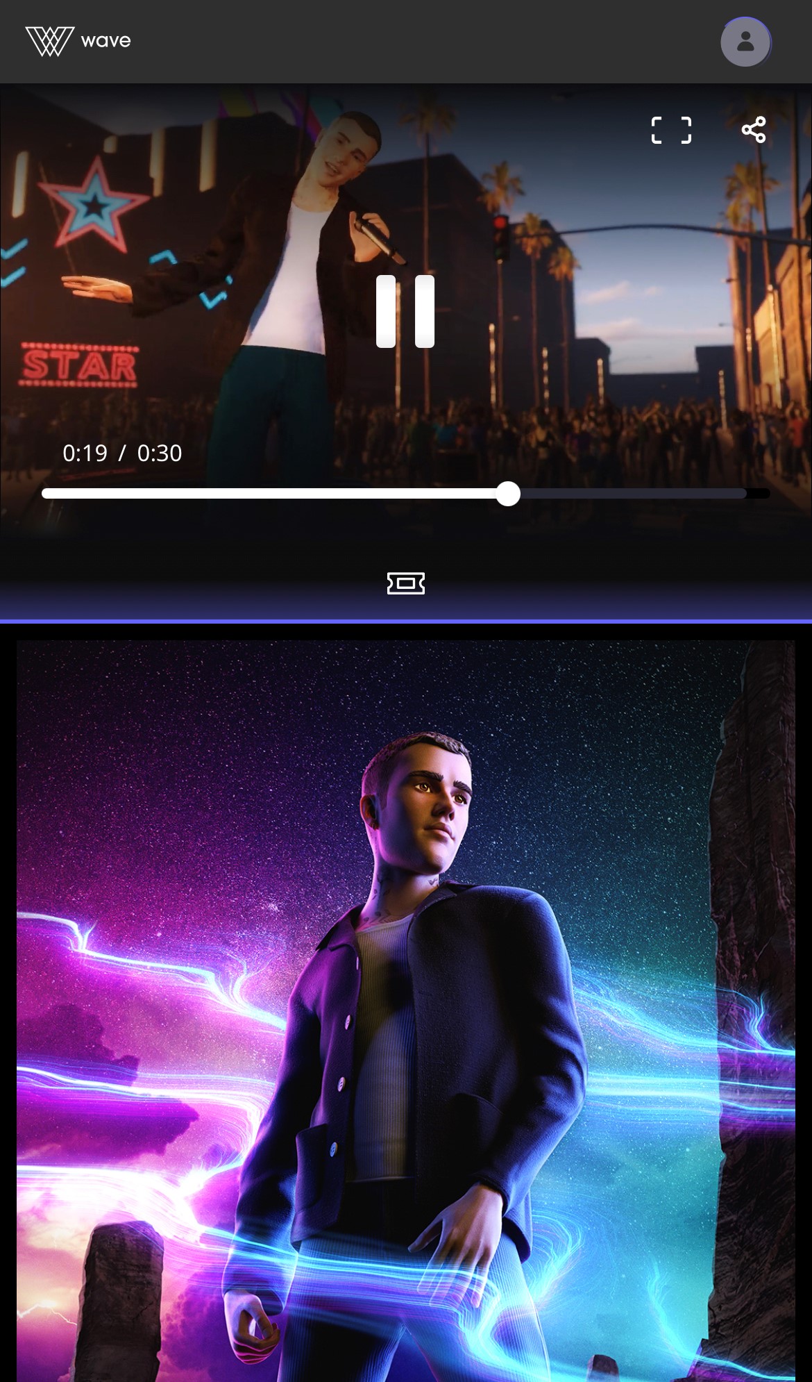 ④ライブ当日はこちらのURLより(https://live.wavexr.com/justin-bieber)ログイン、下記の画面が出ていれば視聴準備完了です!