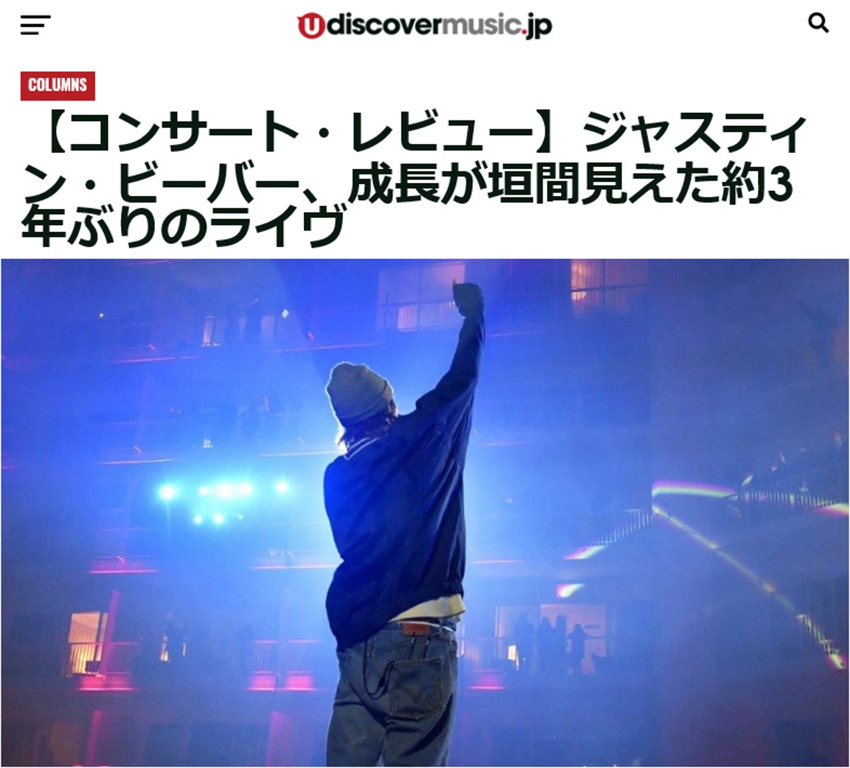 News ALL TOPICS MEDIA LIVE/EVENT 2021.03.19 TOPICS ジャスティン・ビーバー待望の新アルバム『ジャスティス』発売開始 2021.03.08 TOPICS 3/19発売『Justice』からの新曲「Hold On」和訳MV公開! 2021.03.05 TOPICS ジャスティン・ビーバー、新アルバムからの最新曲「ホールド・オン」配信開始 2021.03.01 TOPICS ジャスティン ・ビーバー新作AL日本盤詳細発表 2021.02.12 TOPICS TikTok LIVE開催決定!名盤『Journals』収録曲の初LIVEパフォーマンスを生配信! 2021.02.02 MEDIA - TV 2/4(木)深夜 フジテレビ系音楽情報番組「Tune」にて「エニワン」が紹介されます! 2021.02.01 TOPICS ジャスティンからのコメントも!新曲「エニワン」ミュージック・ビデオの背景を解説 2021.01.29 TOPICS 「エニワン」ミュージックビデオ新バージョン公開 2021.01.22 TOPICS 「Lonely (with benny blanco)」のアコースティック・ヴァージョンが配信開始! 2021.01.05 MEDIA - WEB 【コンサート・レビュー】ジャスティン・ビーバー、成長が垣間見えた約3年ぶりのライヴ 1…34567891011…511…56789…51