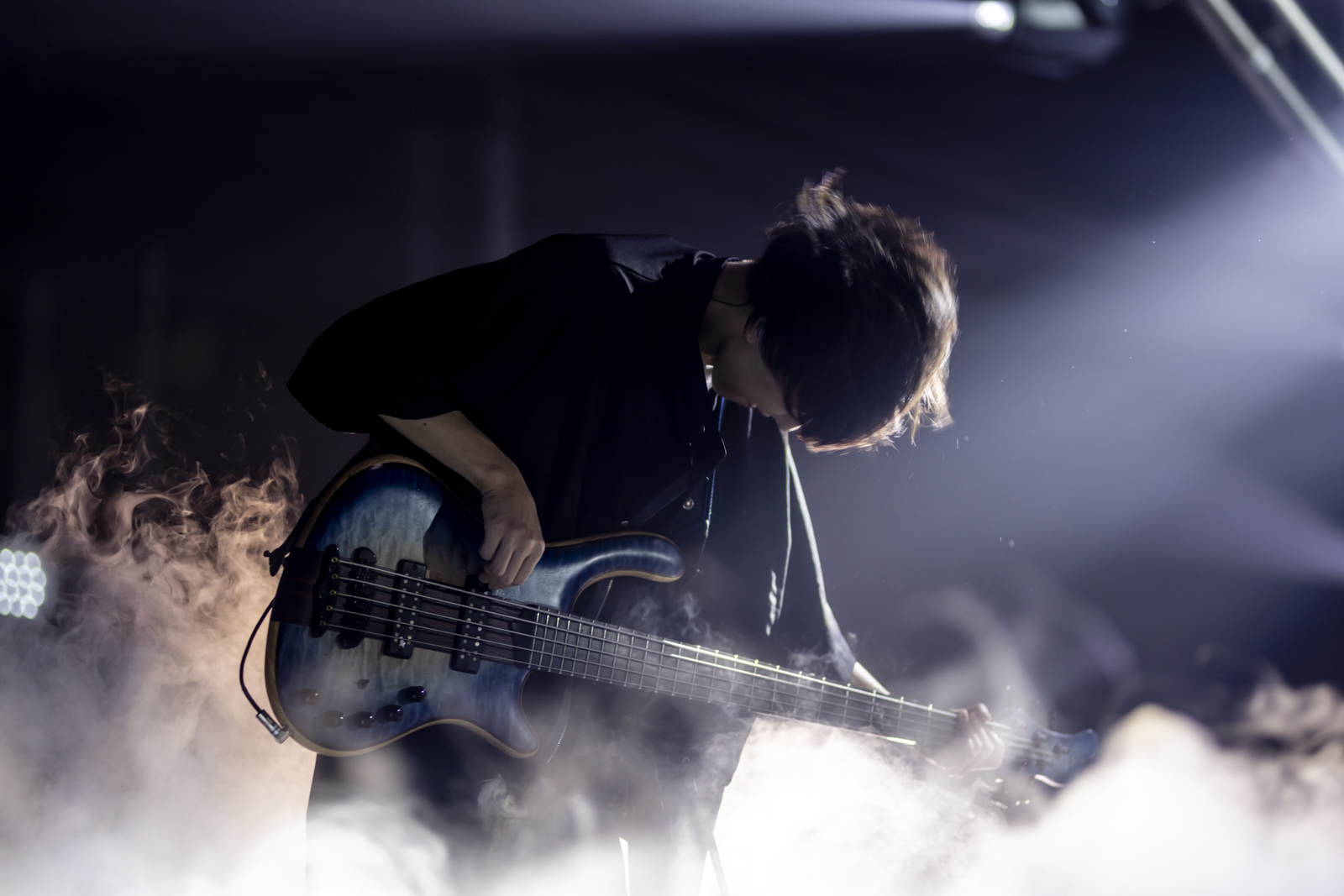 続いて、スペシャルゲストを迎えているというMCを受けて、大歓声の「asmiちゃん」コールの中、asmiが登場。包まれながら、神はサイコロを振らない × asmi「朝靄に溶ける」をコラボで初披露。幻想的なライティングに包まれながら、時にお互いを見つめ合いながら歌唱した。「冬の大三角形」の中の唯一のコラボレーション楽曲であり、冬の季節に相応しいバラードをしっとり歌い上げ、観客を魅了。「asmiさんが“平和“な空間にしてくれたから、もう一曲、“平和“な歌を送ります。」と「目蓋」「徒夢の中で」をパフォーマンスし、終盤に向けての世界観を作り上げていき、観客を寄りディープな神サイワールドに引き込んでいく。