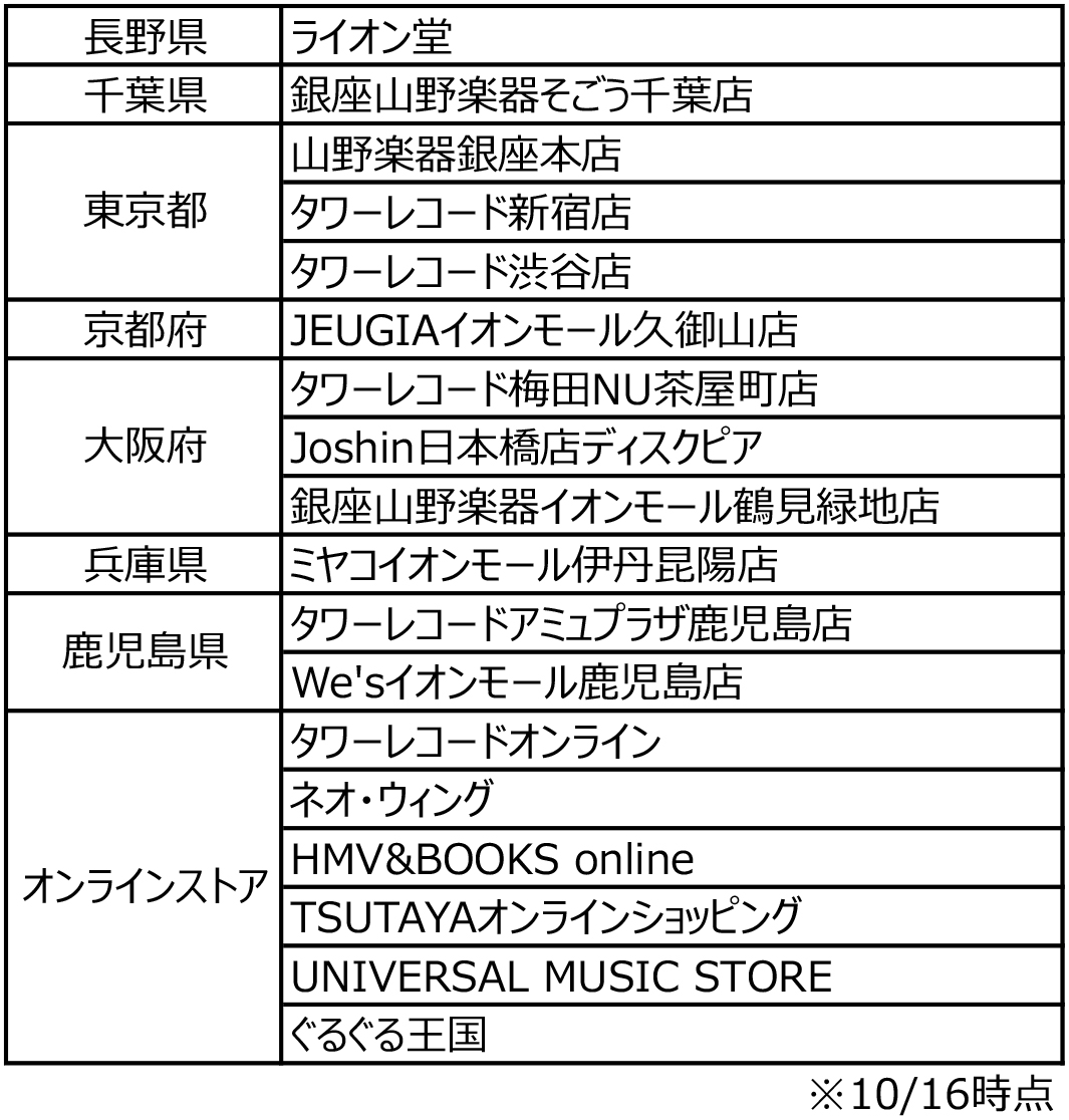 また記載がない店舗でも特典が付く場合がございますので、お近くのCDショップで特典の有無をご確認ください。