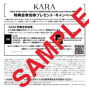 ※UNIVERSAL MUSIC STORE限定販売として、初回限定盤(2CD+DVD+Photobook)+来日ファンミーティング観覧チケット+グッズ(メンバー5人のアクリルスタンドを予定)が同梱された限定セット販売を後日販売開始いたします。こちらのセット販売も同じく12/21(水)発売となりますので、ご希望の方は販売開始まで今しばらくお待ちください。詳細は決まり次第、UNIVERSAL MUSIC HP (https://www.universal-music.co.jp/kara/) にてご案内いたします。