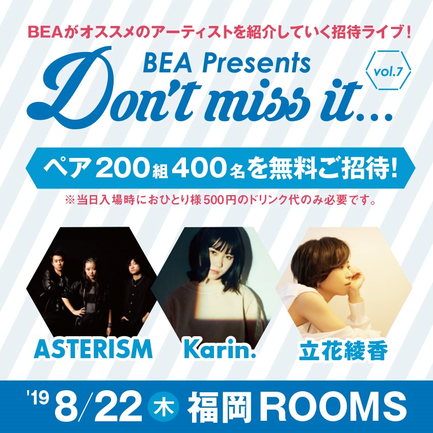 8月22日(木)BEA Presents『Don’t miss it…vol.7』出演決定