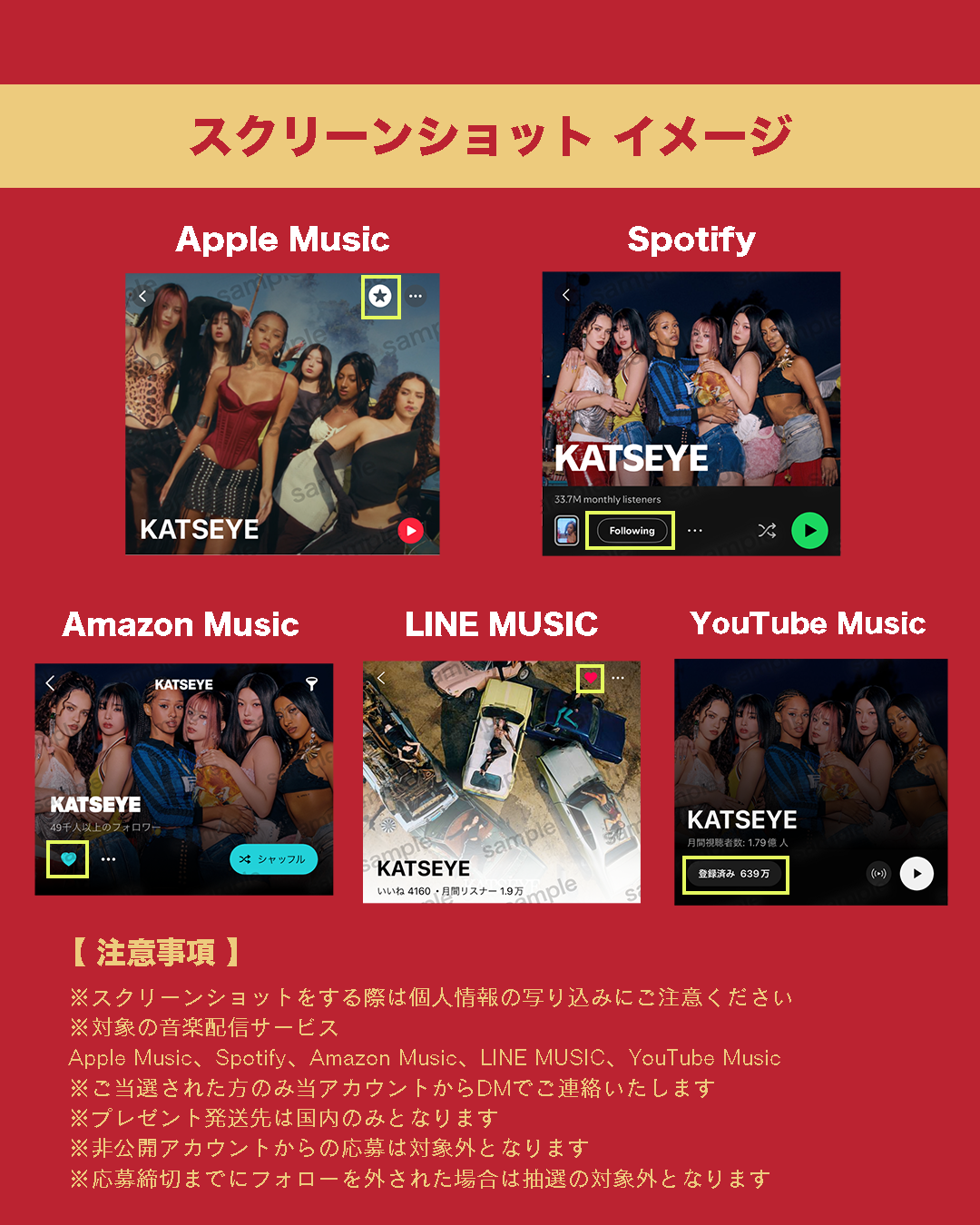 ②対象の音楽配信サービスでKATSEYEをフォロー