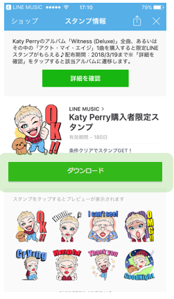 このダウンロード販売を記念して、「LINE MUSIC」にて「アクト・マイ・エイジ」1曲、またはアルバム『ウィットネス』全曲を購入すると、ケイティ・ペリー限定デザインのLINEスタンプが手に入ることとなった。限定デザインのLINEスタンプがもらえる楽曲の購入期限は、2018年3月19日(月)23時59分までとなっているため、この機会をお見逃しなく。