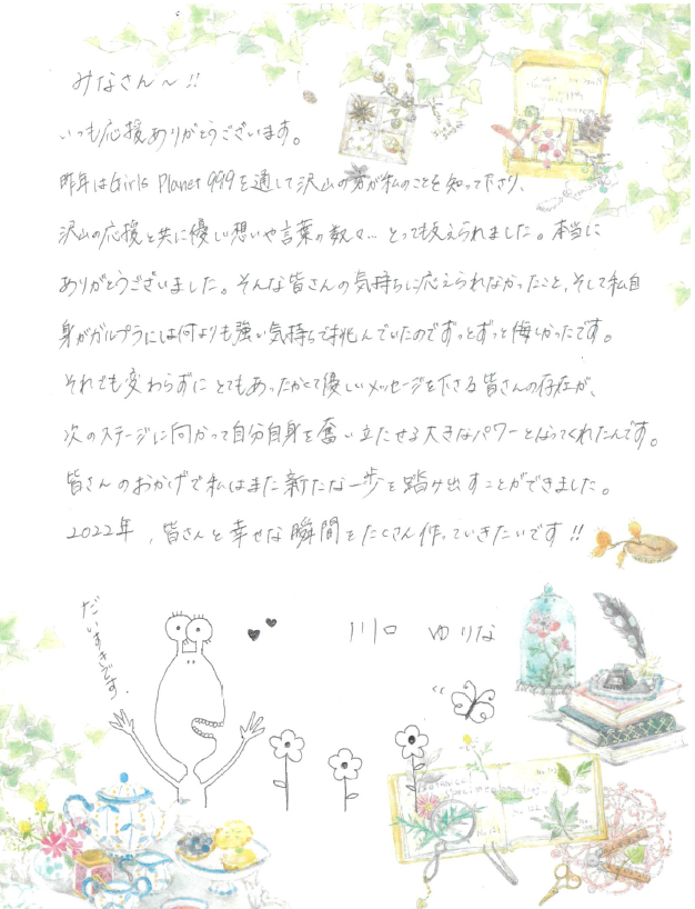ファンのみなさんへ、ゆりなから直筆メッセージが到着しました。