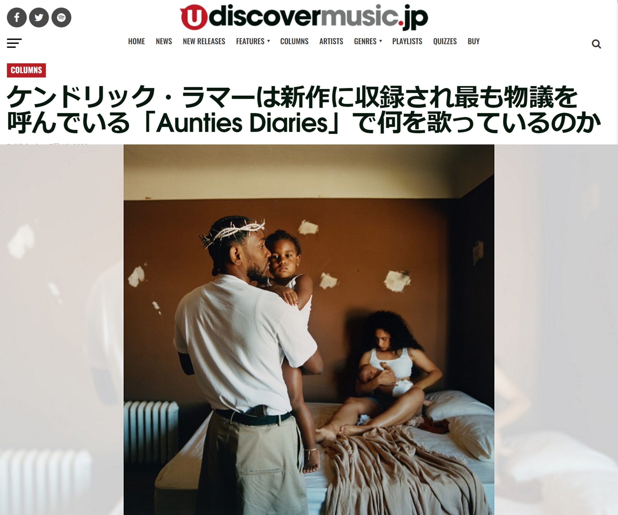 News ALL TOPICS MEDIA LIVE/EVENT 2022.07.15 TOPICS 最新アルバム『ミスター・モラル&ザ・ビッグ・ステッパーズ』日本盤CD発売を記念し、『DOMMUNE』にてアルバム徹底解説番組の生放送が決定 2022.06.08 MEDIA - WEB TURNにて特集記事が公開 2022.06.01 MEDIA - TV スペースシャワーTV 6月のV.I.P. INTERNATIONALに決定! 2022.06.01 MEDIA - TV MTV 6月前期”BUZZ CLIP”に決定! 2022.05.31 MEDIA - TV ケンドリック・ラマー「N95」MV紹介 2022.05.18 MEDIA - WEB 【解説】新作に収録され最も物議を呼んでいる「Auntie Diaries」でケンドリックは何を歌っているのか 2022.05.13 TOPICS 5年ぶりとなるスタジオ・アルバム『ミスター・モラル&ザ・ビッグ・ステッパーズ』発売 2022.05.12 MEDIA - WEB フロントロウにてコラム記事掲載 2022.05.10 MEDIA - WEB 【徹底解説】ケンドリック・ラマー新曲「The Heart Part 5」 2022.05.09 TOPICS ニュー・シングル「The Heart Part 5」配信開始! 12345678…13123456…13