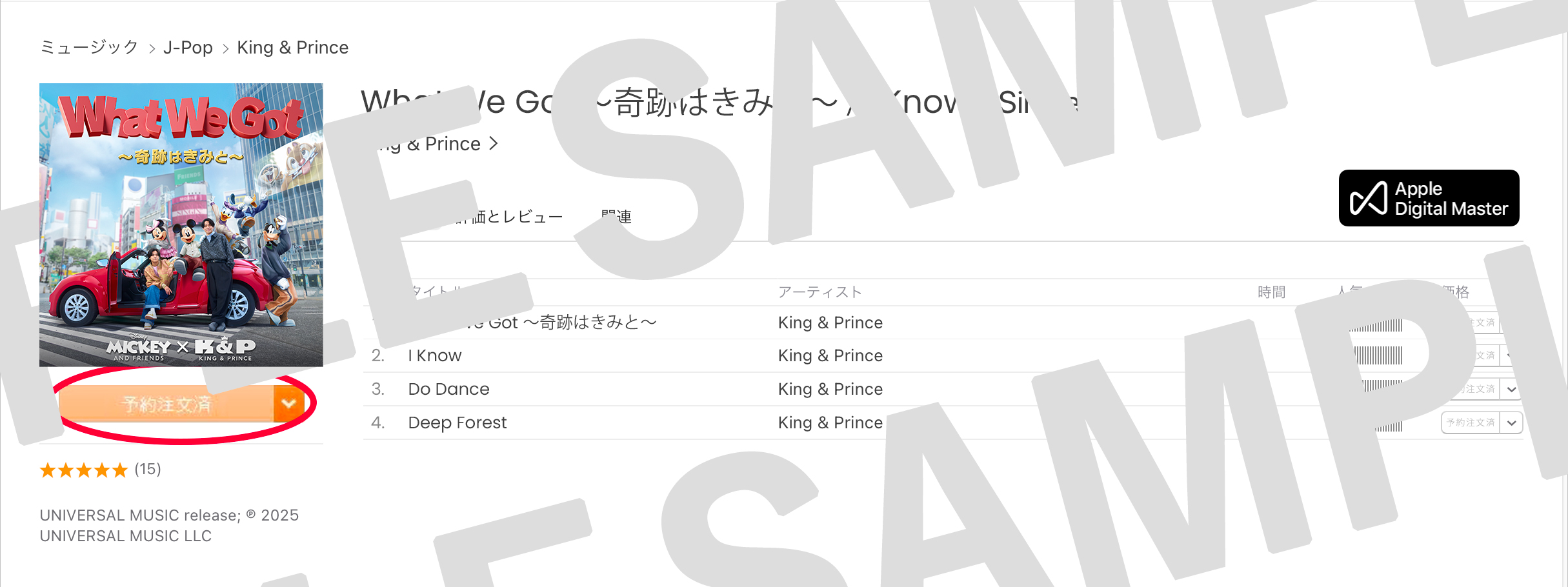 - iTunes StoreでKing & Prince「What We Got ~奇跡はきみと~ / I Know」のページにアクセスをする。