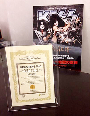 <BARKS News Award>洋楽部門に選ばれました! 2013.12.03 MEDIA - WEB 音楽情報サイト、BARKSにて、KISSが、<BARKS News Award>(10月度)洋楽部門に選ばれました。洋楽のアクセスランキングトップ1と2を独占! 掲載記事はこちらhttp://www.barks.jp/news/?id=1000096768
