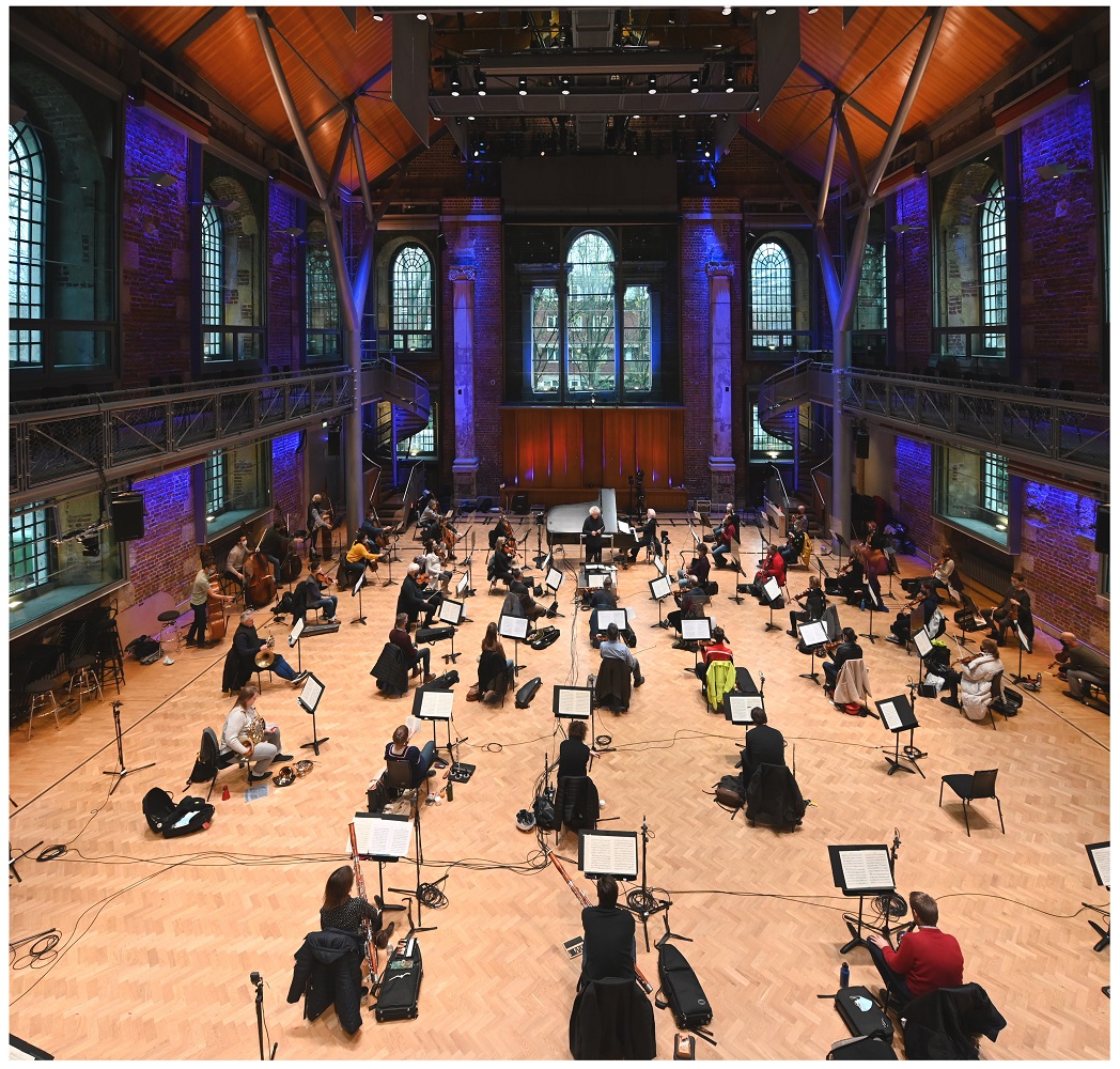 この企画は当初、ベートーヴェンの誕生日とされる昨年12月16日に、ロンドンのバービカンセンターで5曲のピアノ協奏曲を一夜で演奏する予定であったが、ロンドンのロックダウンのため公開イベントはキャンセルに。代わりにロンドン交響楽団の本拠地のひとつ聖ルカ教会ホールにおいて、オーケストラ団員はソーシャル・ディスタンスを取り、アクリル板など万全な感染防止策をとった上で録音と映像の収録が行われた。