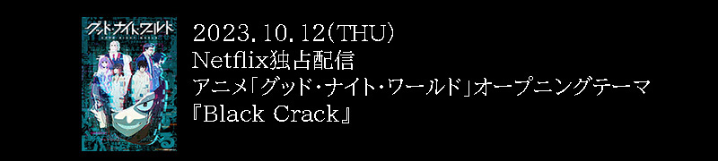 CD MAXI Black Crack [3形態同時購入セット] 付 属 Blu-ray 発売日 2023.11.08 価 格 ¥5,720 (税込) 品 番 D2CE-12559 BUY NOW BUY NOW