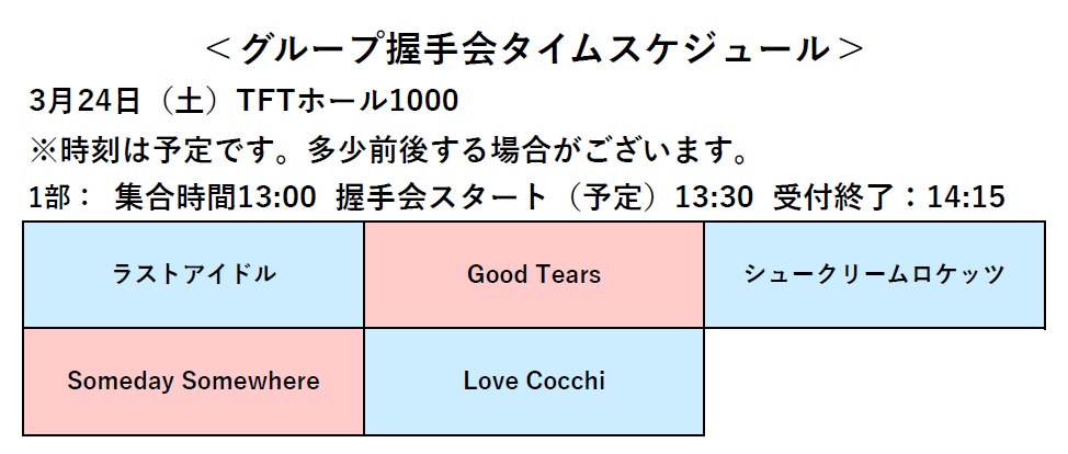 ※グループ握手会について、長月翠はシュークリームロケッツとして参加いたします。