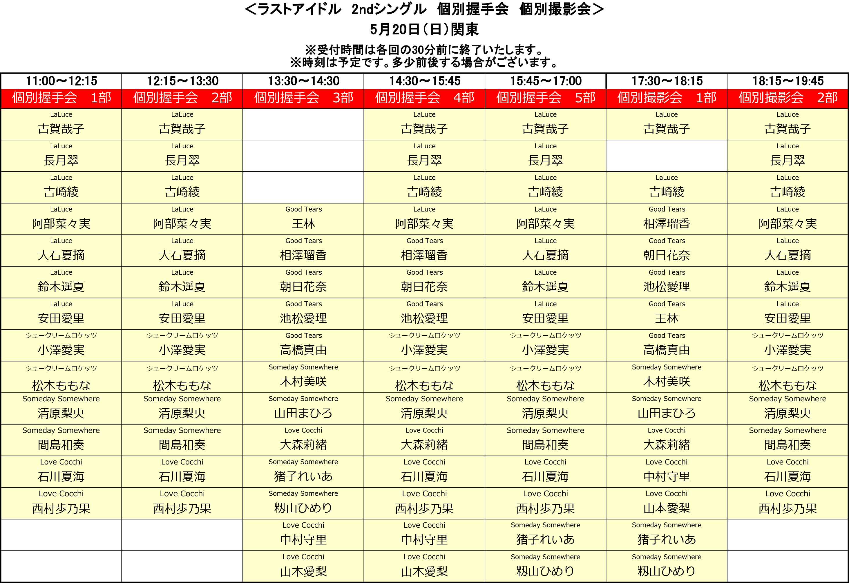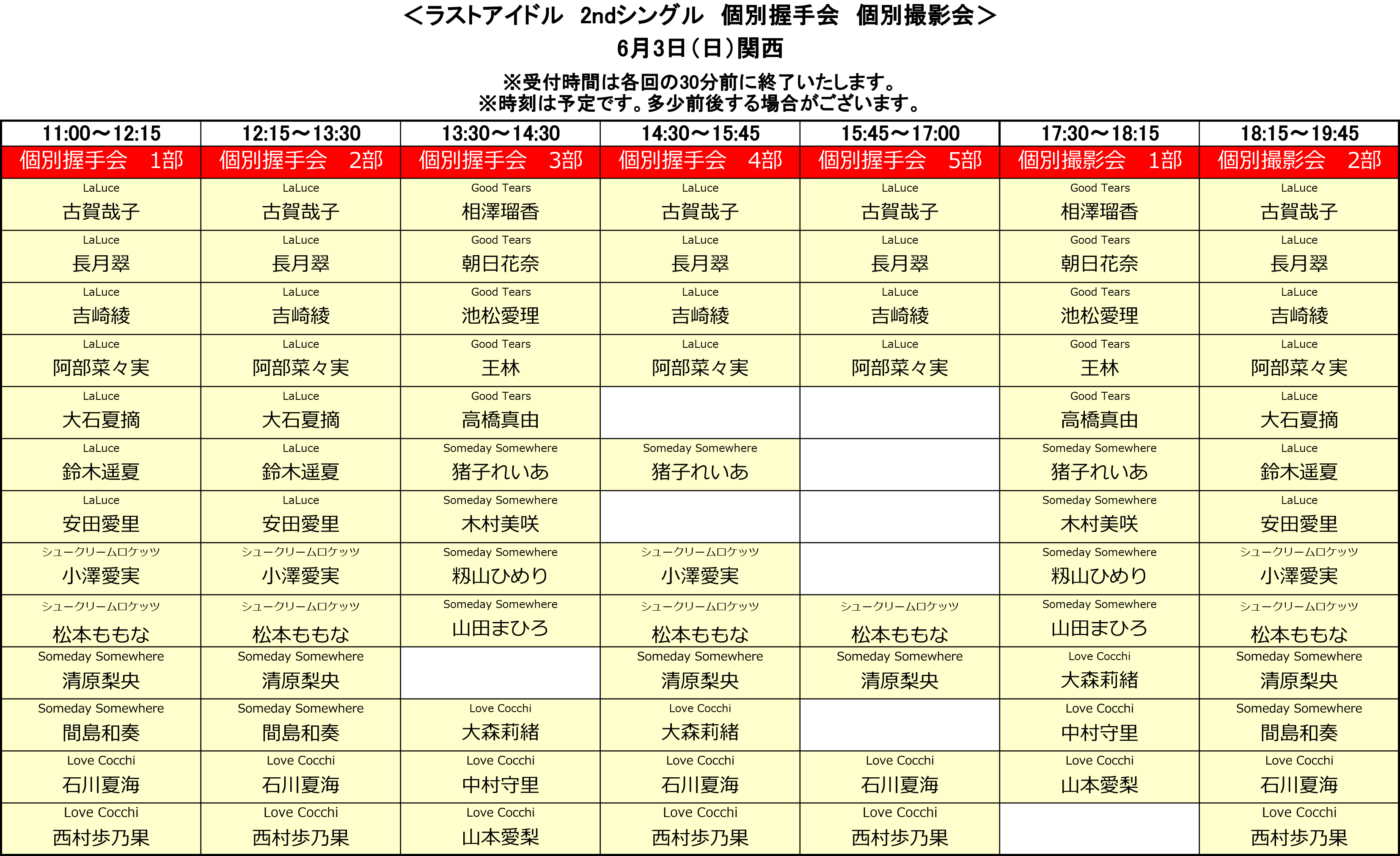 ■いずれの開催日でも、主催者側によって各メンバー別に割り当てた開催時間内での握手対応とさせて頂きます。時間外での対応は致しかねますことをご留意ください。