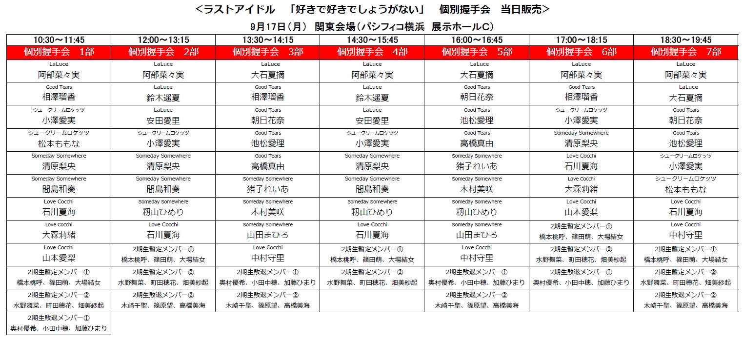 9月17日(月祝)パシフィコ横浜 展示ホールCで開催されるラストアイドル「好きで好きでしょうがない」WEB盤イベントにつきまして、2期生の参加メンバーが決定しましたので、お知らせいたします。