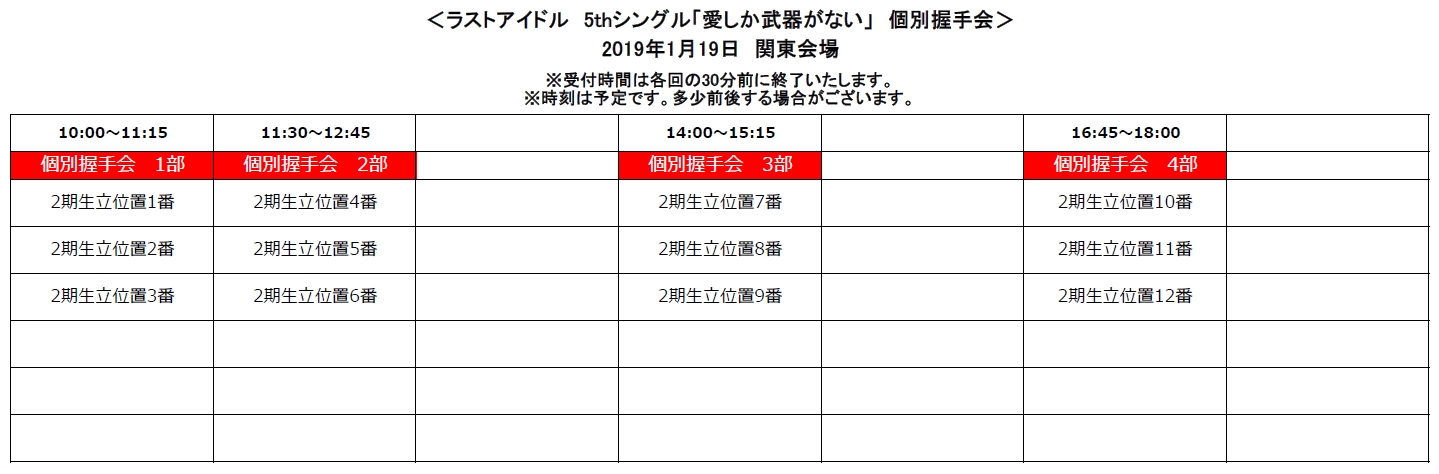 【ラストアイドル 立ち位置番号でのお申し込みにつきまして】