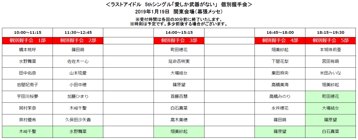 ■いずれの開催日でも、主催者側によって各メンバー別に割り当てた開催時間内での握手対応とさせて頂きます。時間外での対応は致しかねますことをご留意ください。