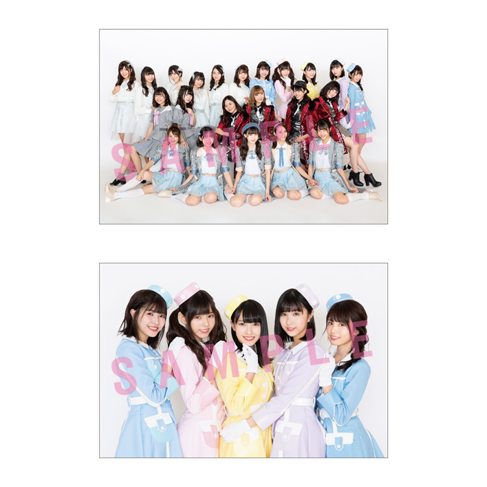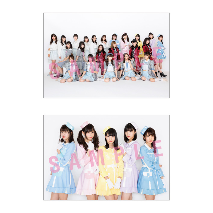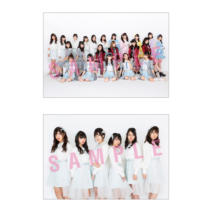 全12種類を、22名全員A絵柄&各グループA絵柄のセットと22名全員B絵柄&各グループB絵柄のセット、計10パターンのセットにして、各メンバーが自分の所属グループのA絵柄とB絵柄の2パターンから、お渡し会参加券1枚につき1セットをランダムでお配りします。