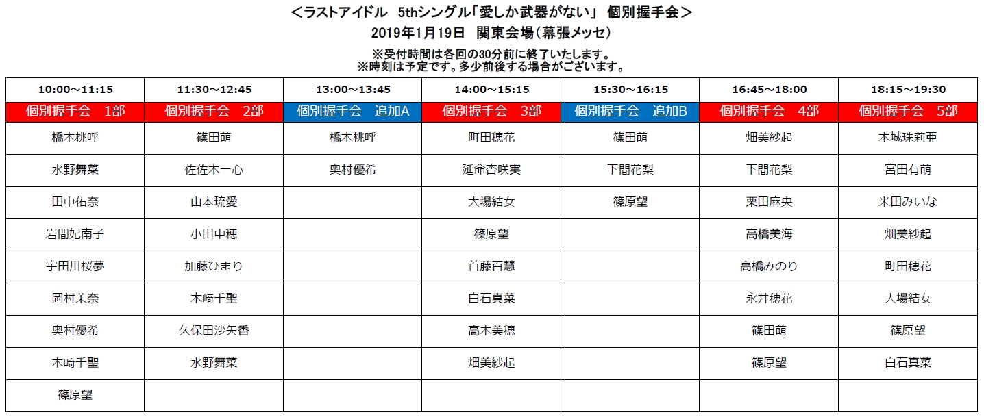 ■いずれの開催日でも、主催者側によって各メンバー別に割り当てた開催時間内での握手対応とさせて頂きます。時間外での対応は致しかねますことをご留意ください。