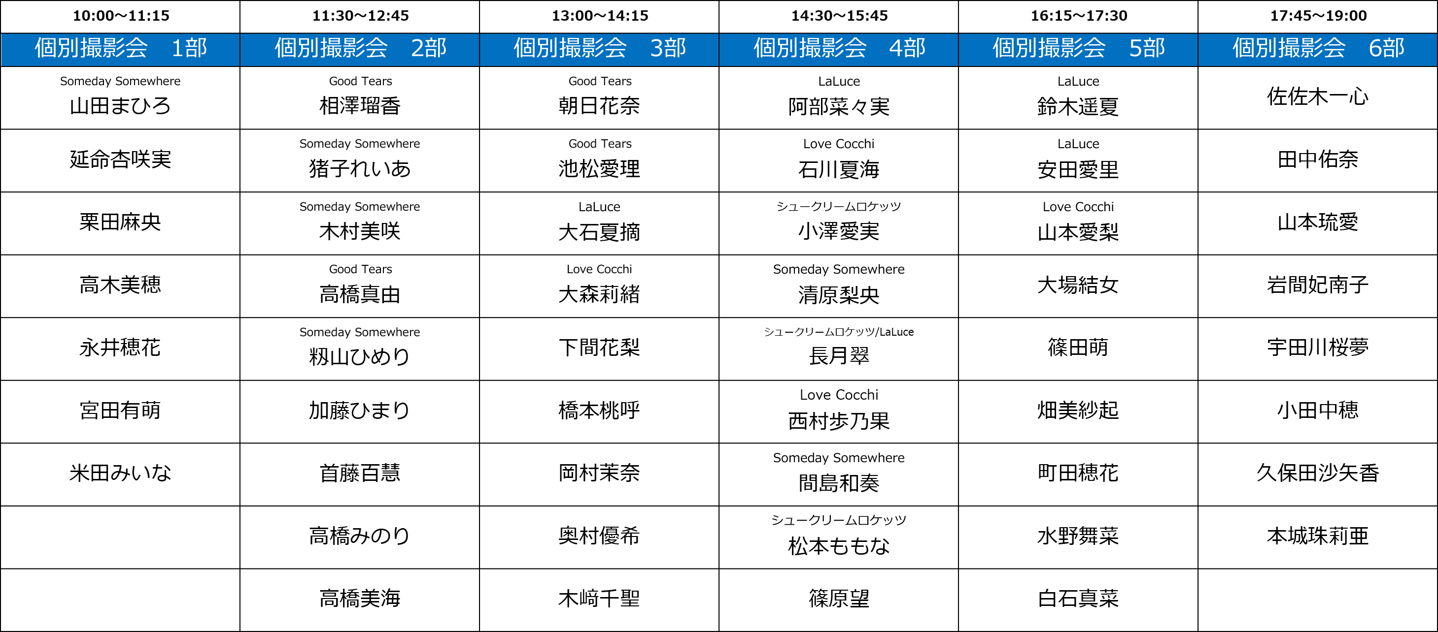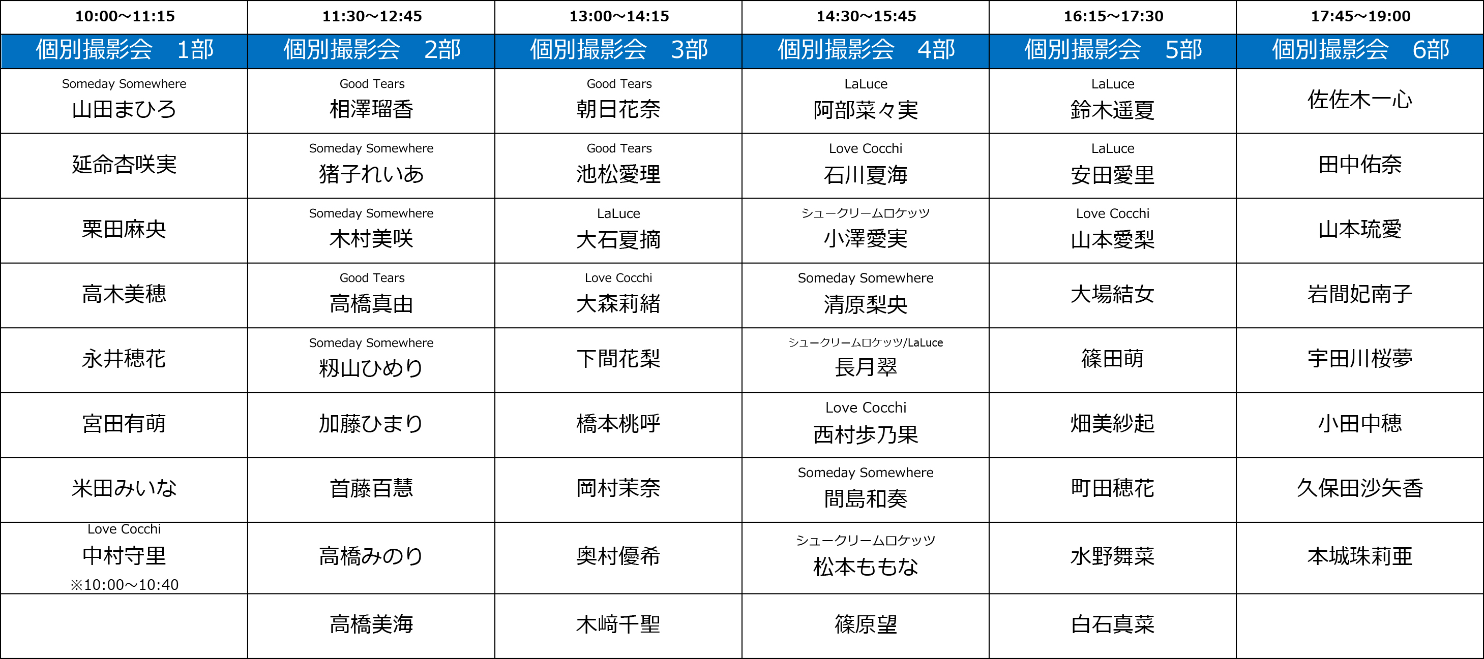 ・6/15:個別撮影会1部の10:00~10:40のみ参加