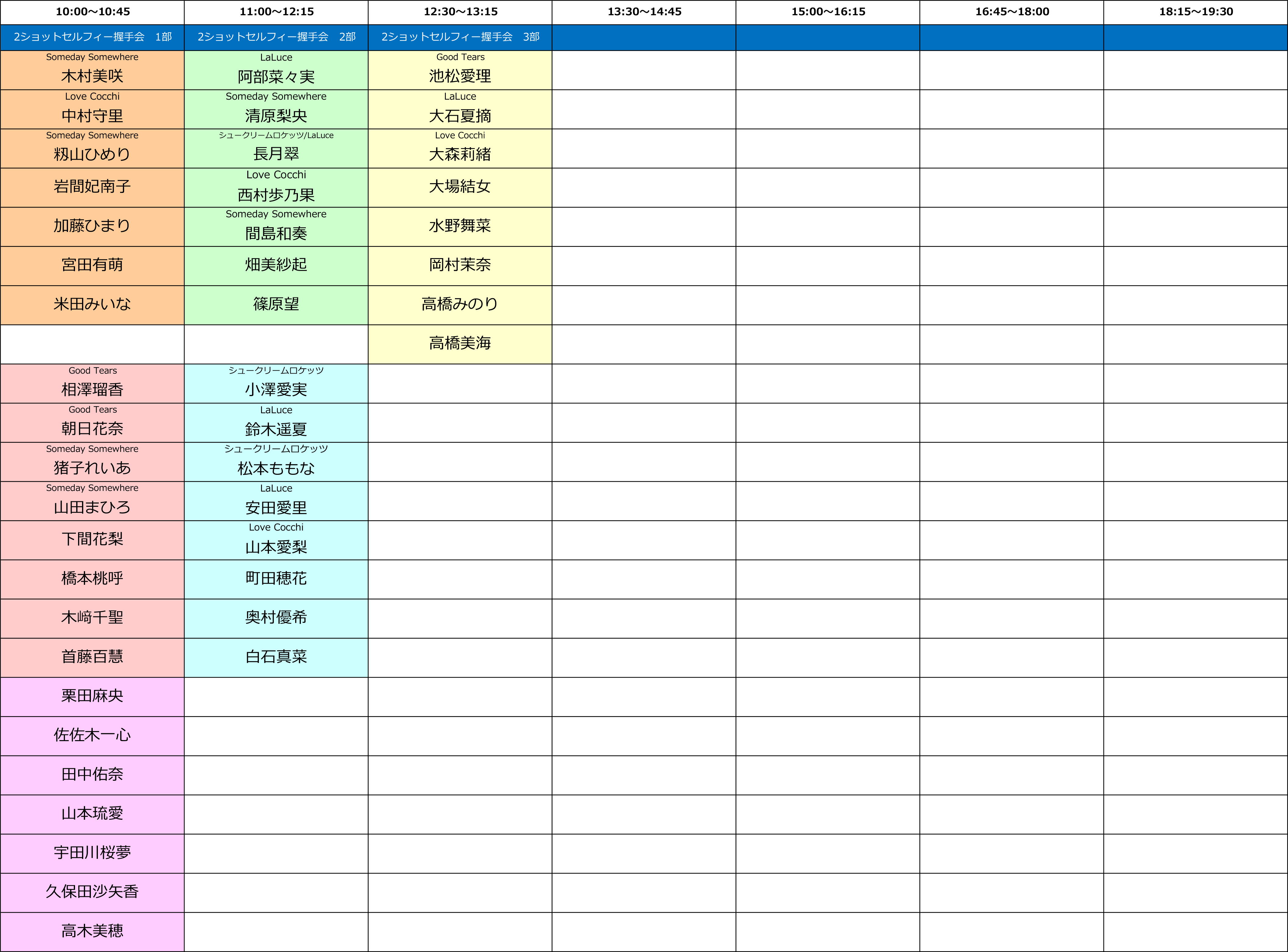 ・いずれの開催日でも、主催者によって各メンバー別に割り当てた開催時間内での握手、撮影対応とさせて頂きます。時間外での対応は致しません。