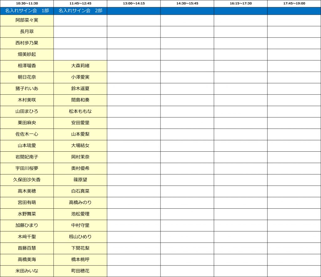 ・個別握手会、個別撮影会、名入れサイン会には各部に受付締め切り時間が設定されています。