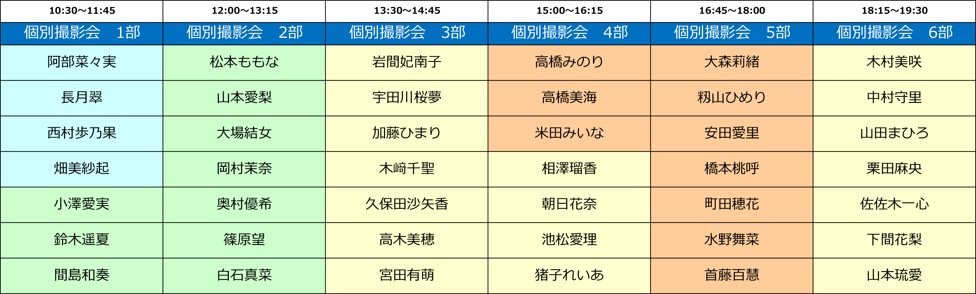・個別握手会、個別撮影会、名入れサイン会には各部に受付締め切り時間が設定されています。