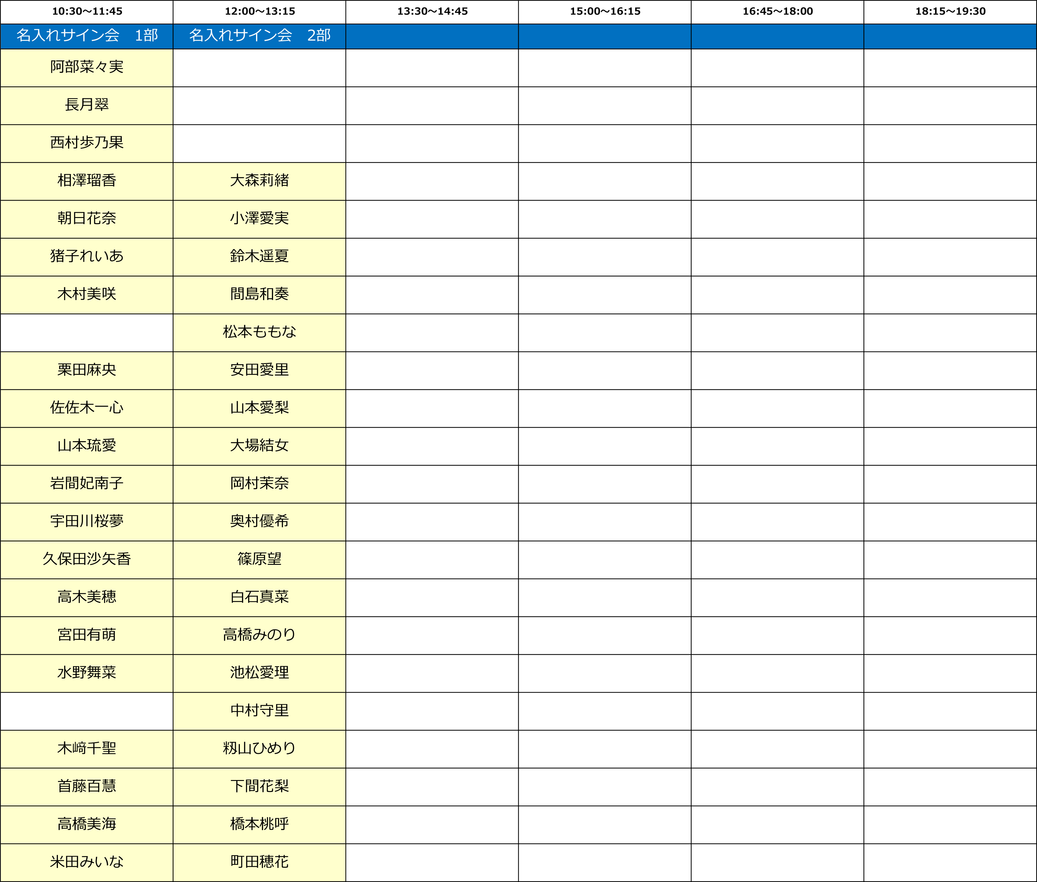 ・握手会、撮影会、名入れサイン会は、握手会ゾーン受付終了後、列が途切れ次第、終了とさせていただきます。終了後はお並びいただいても参加はできません。