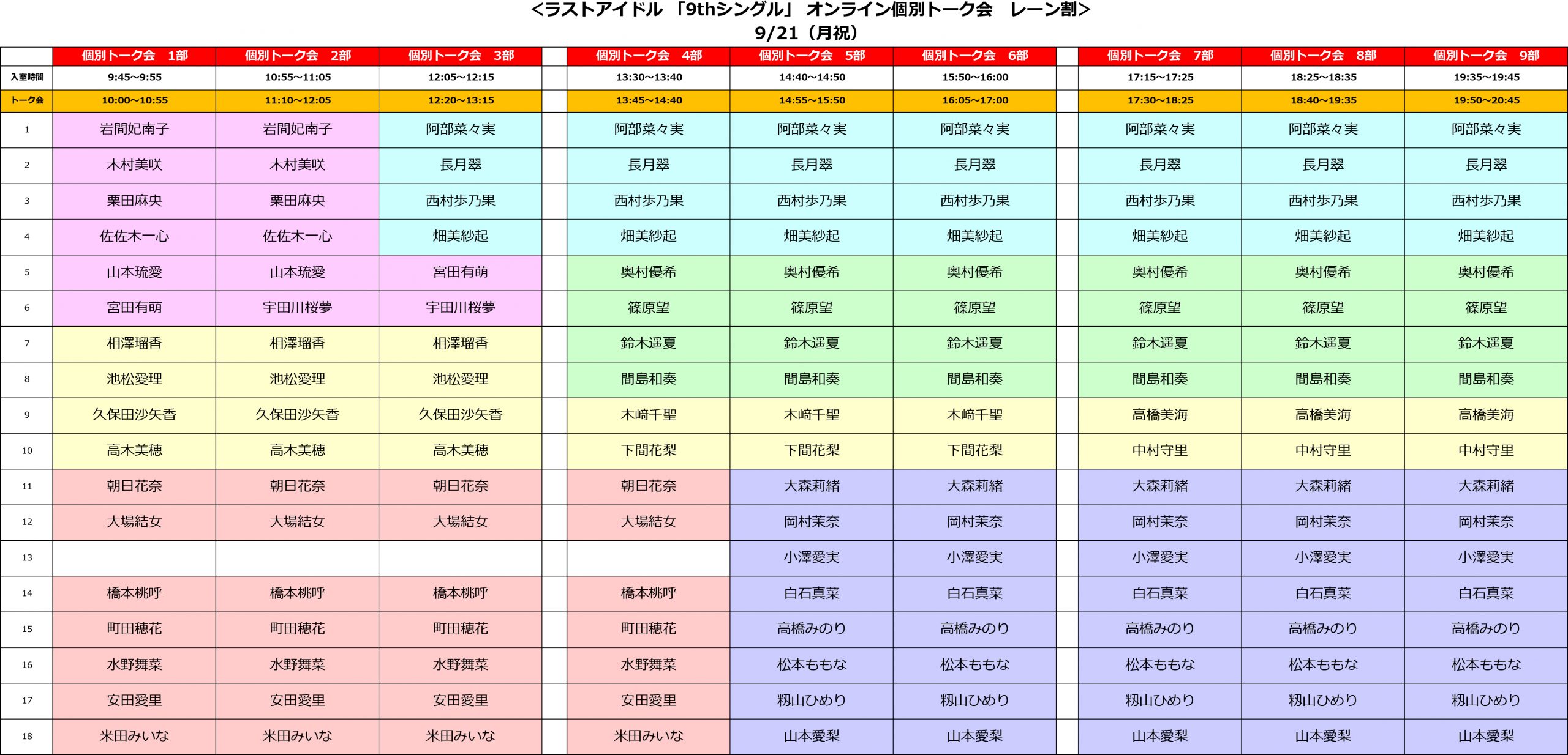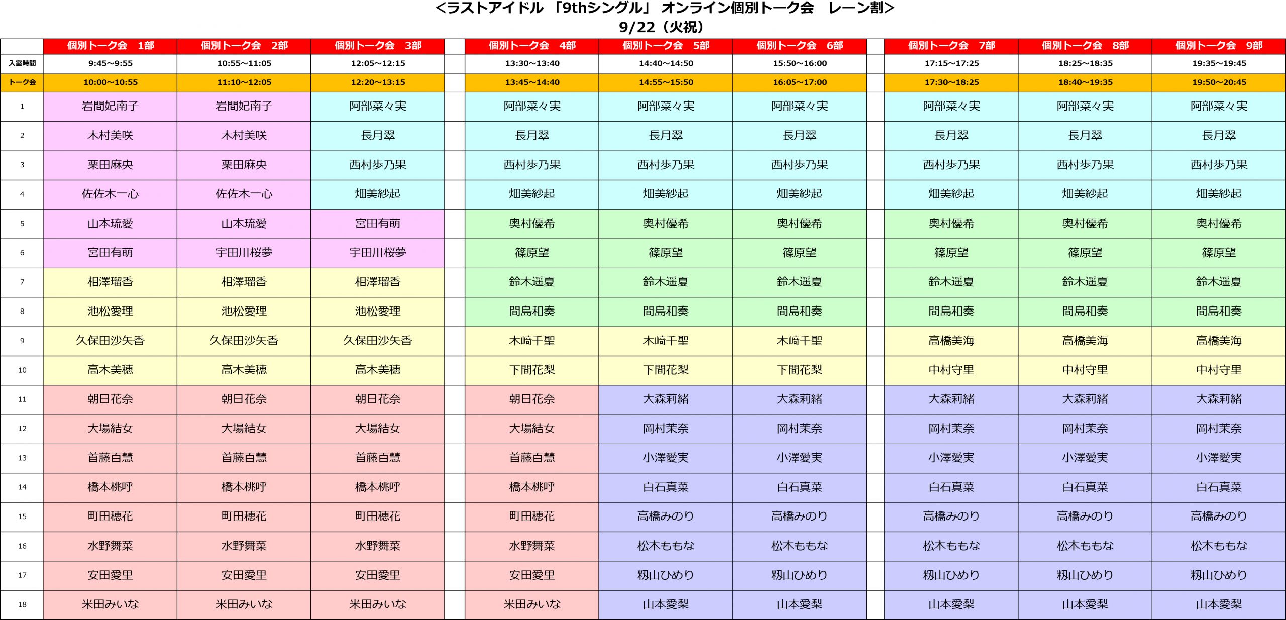 ・参加されるお客様は、必ずレーン割タイムテーブルに記載された各部の入室時間内に「EVENT SCHEDULE」画面までお進みください。入室時間内に手続きがされていない場合は、参加権利は失効となり、参加権利をお持ちでもオンライン個別トーク会には参加いただけません。