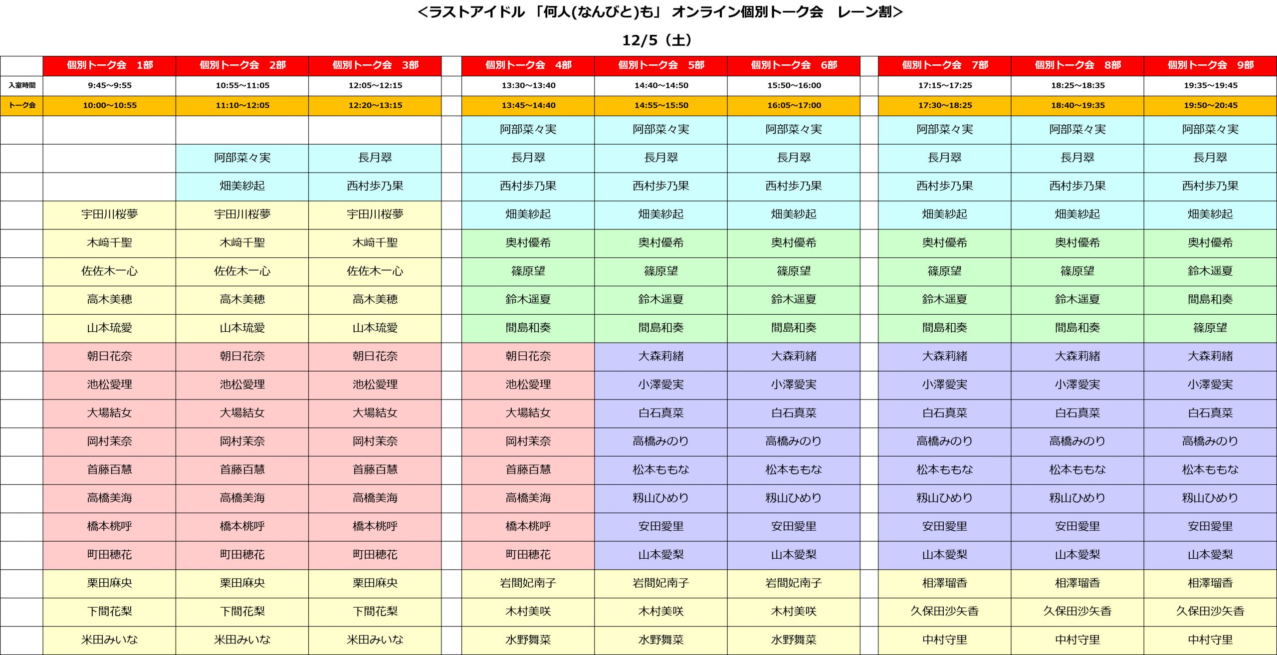 ・参加されるお客様は、必ずレーン割タイムテーブルに記載された各部の入室時間内に「EVENT SCHEDULE」画面までお進みください。入室時間内に手続きがされていない場合は、参加権利は失効となり、参加権利をお持ちでもオンライン個別トーク会には参加いただけません。