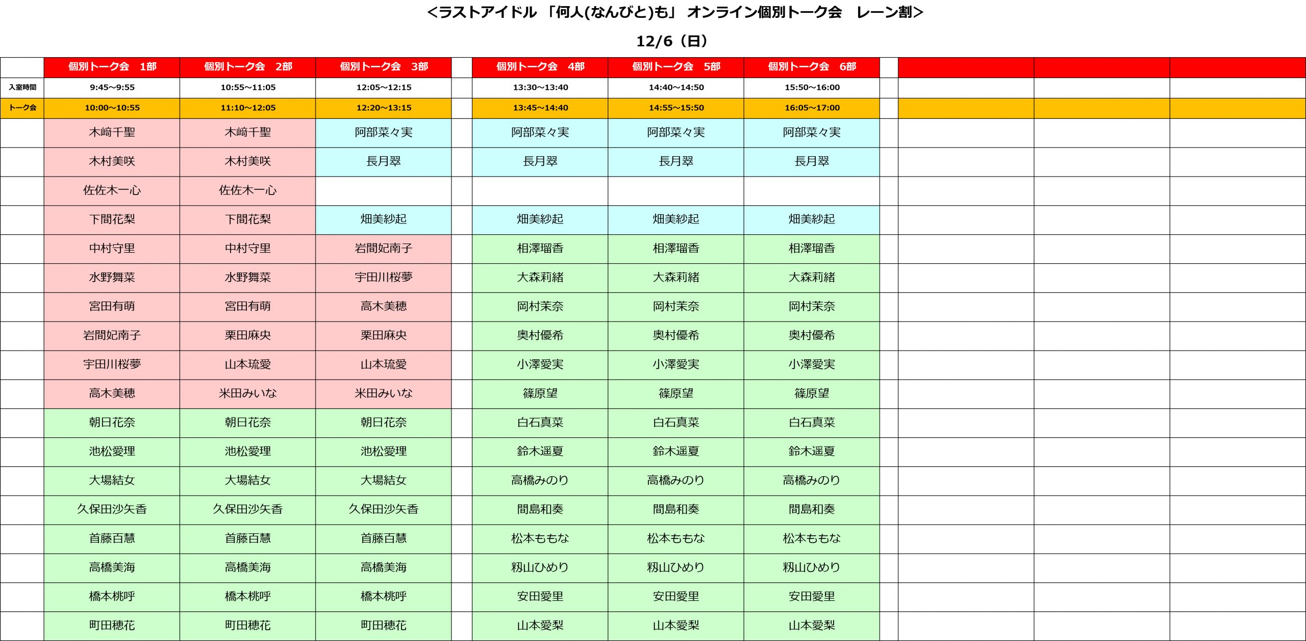 ■同一部の時間内で多くのお客様がお持ちの参加権利を可能な限りご利用いただくために、各部の最終購入数確定後、運営側で自動的に各部のタイムテーブルを形成させて頂き、その順番でご参加いただきます。