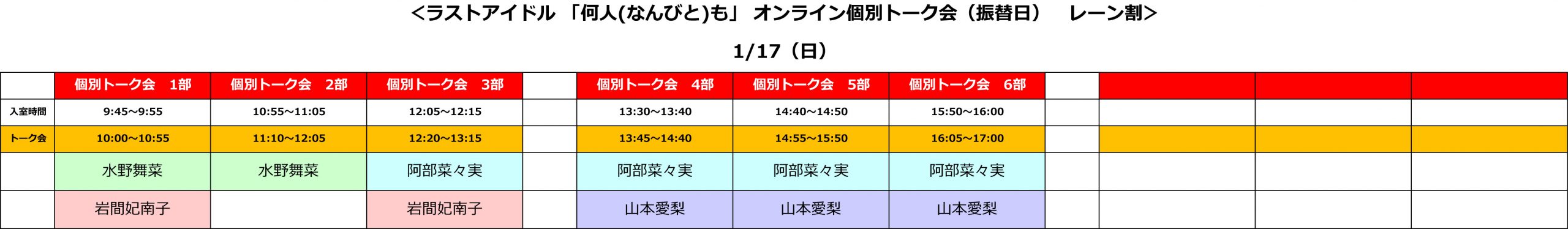 ・振替イベントは各メンバー共、実施予定だったイベントと同曜日同時間帯枠への振り替えとさせていただきます。