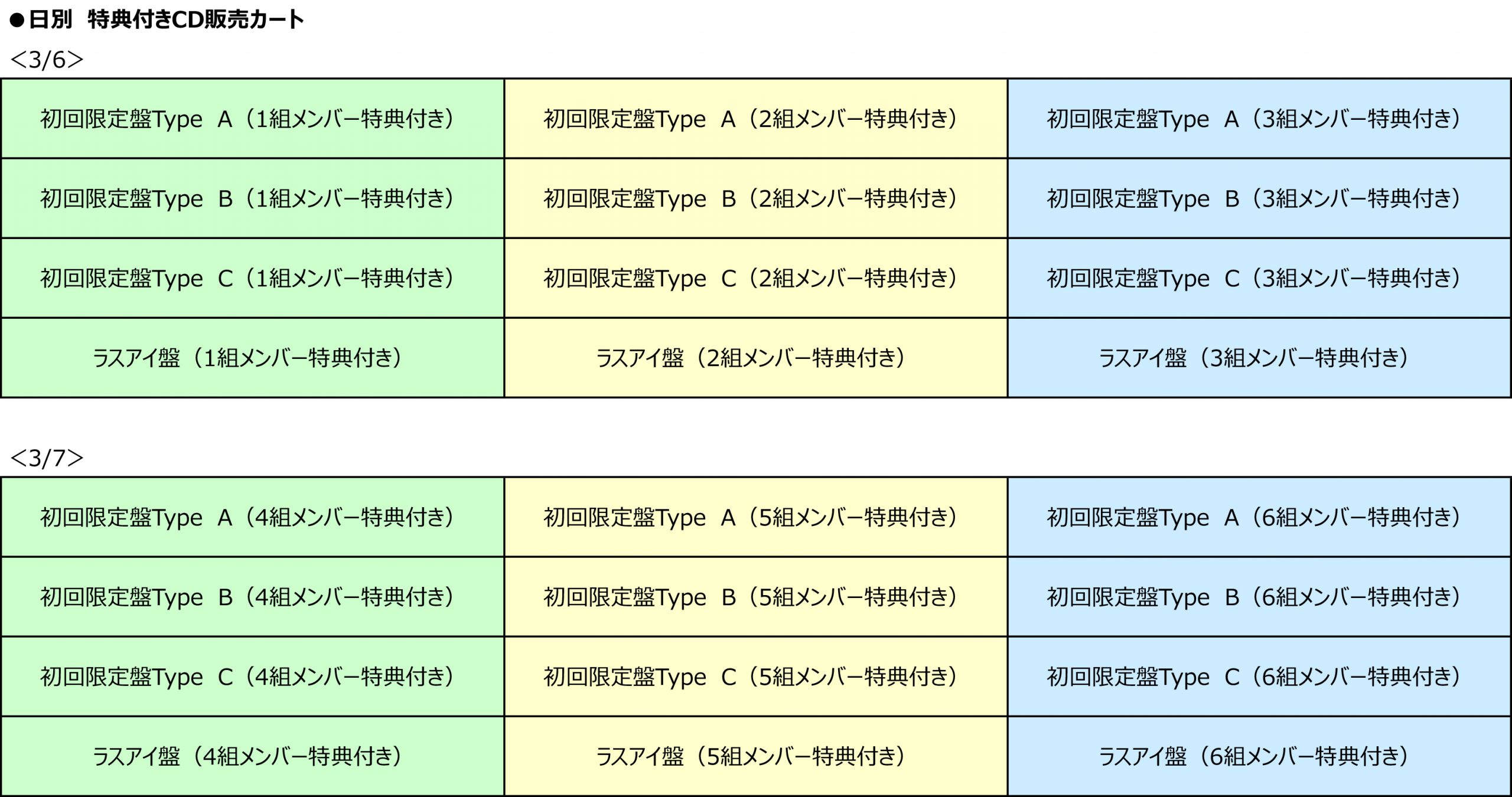 3月6日に購入できるCD:1組、2組、3組の特典付きCD