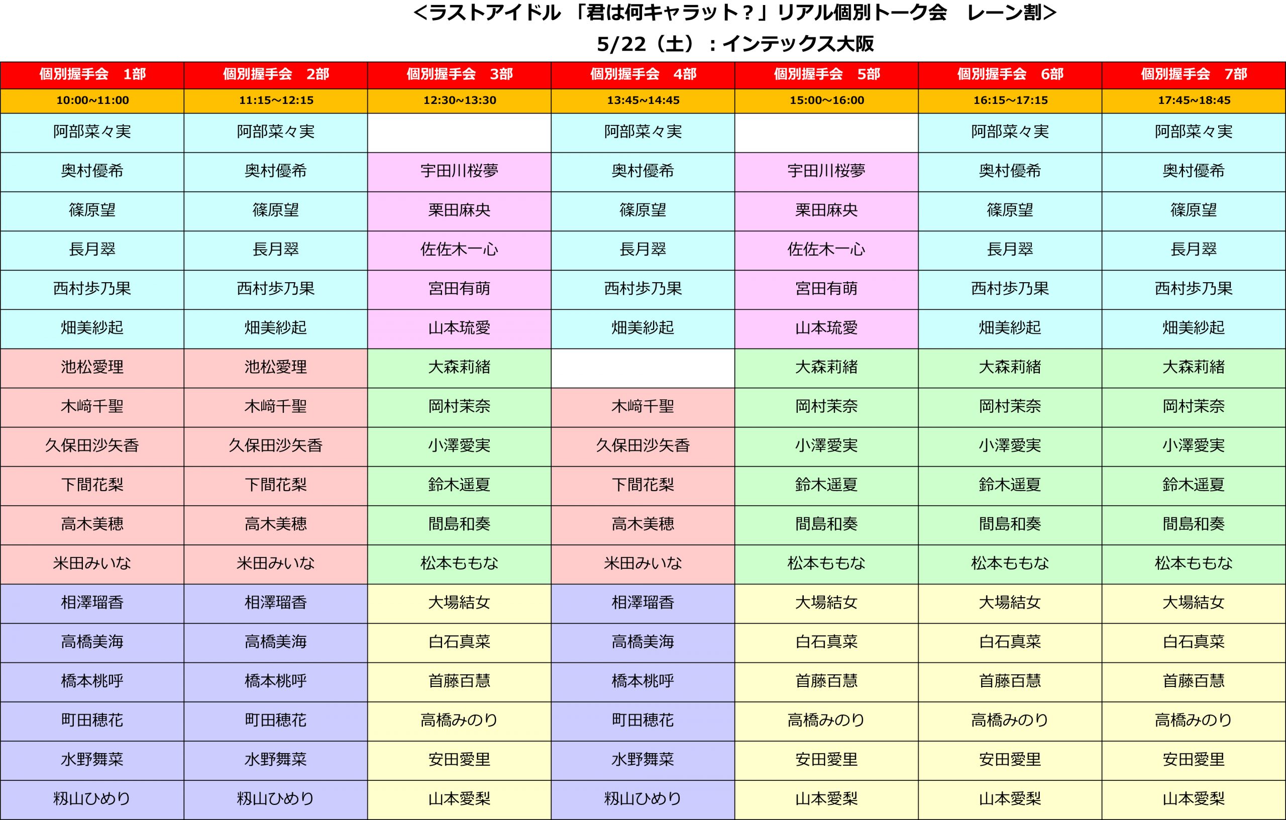 ※リアル個別トーク会では、個別握手会の握手会ゾーンに値するトーク会ゾーンは設けません。各レーンの受付締め切り時間で受付を終了とさせていただきます。ご注意下さい。