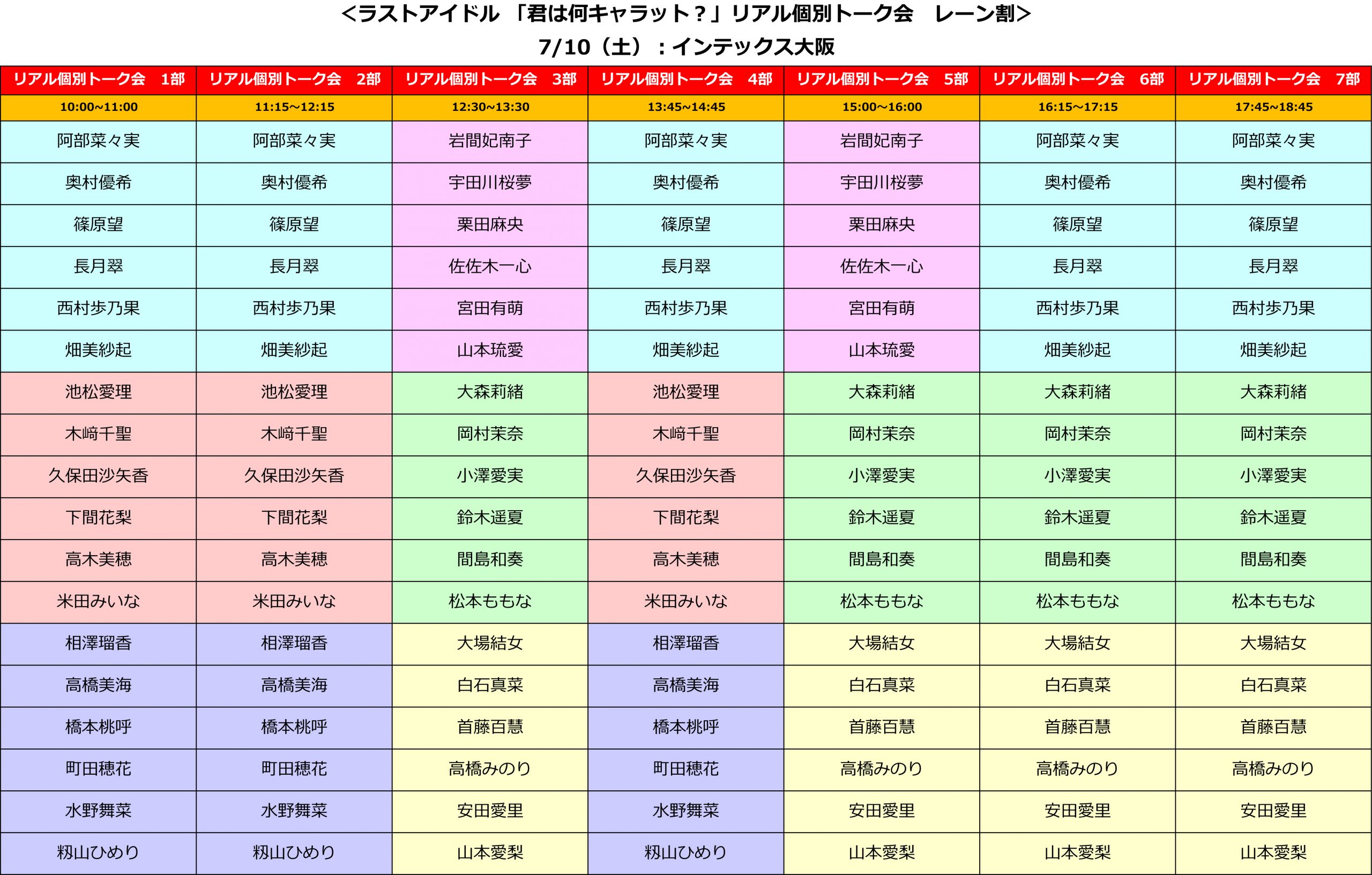 ・各部とも下記のレーンの受付最終締め切り時間で各レーンの受付を締め切らせていただきます。受付最終締め切り時間後に並ばれてもリアル個別トーク会には参加いただけません。