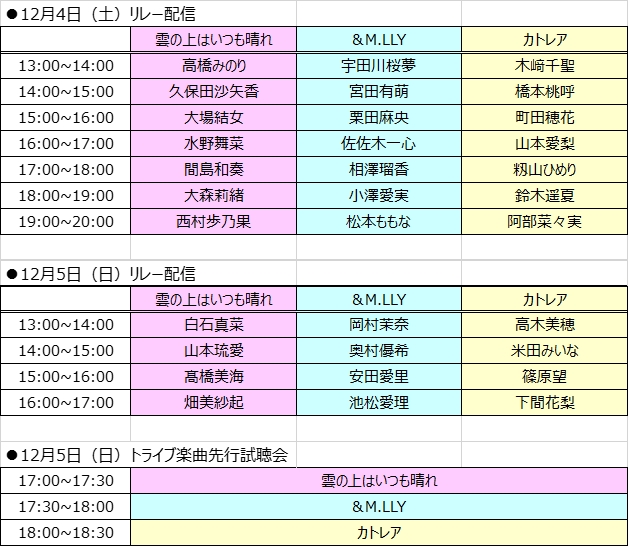 ●リレー配信(各トライブからメンバー4名 計12名)