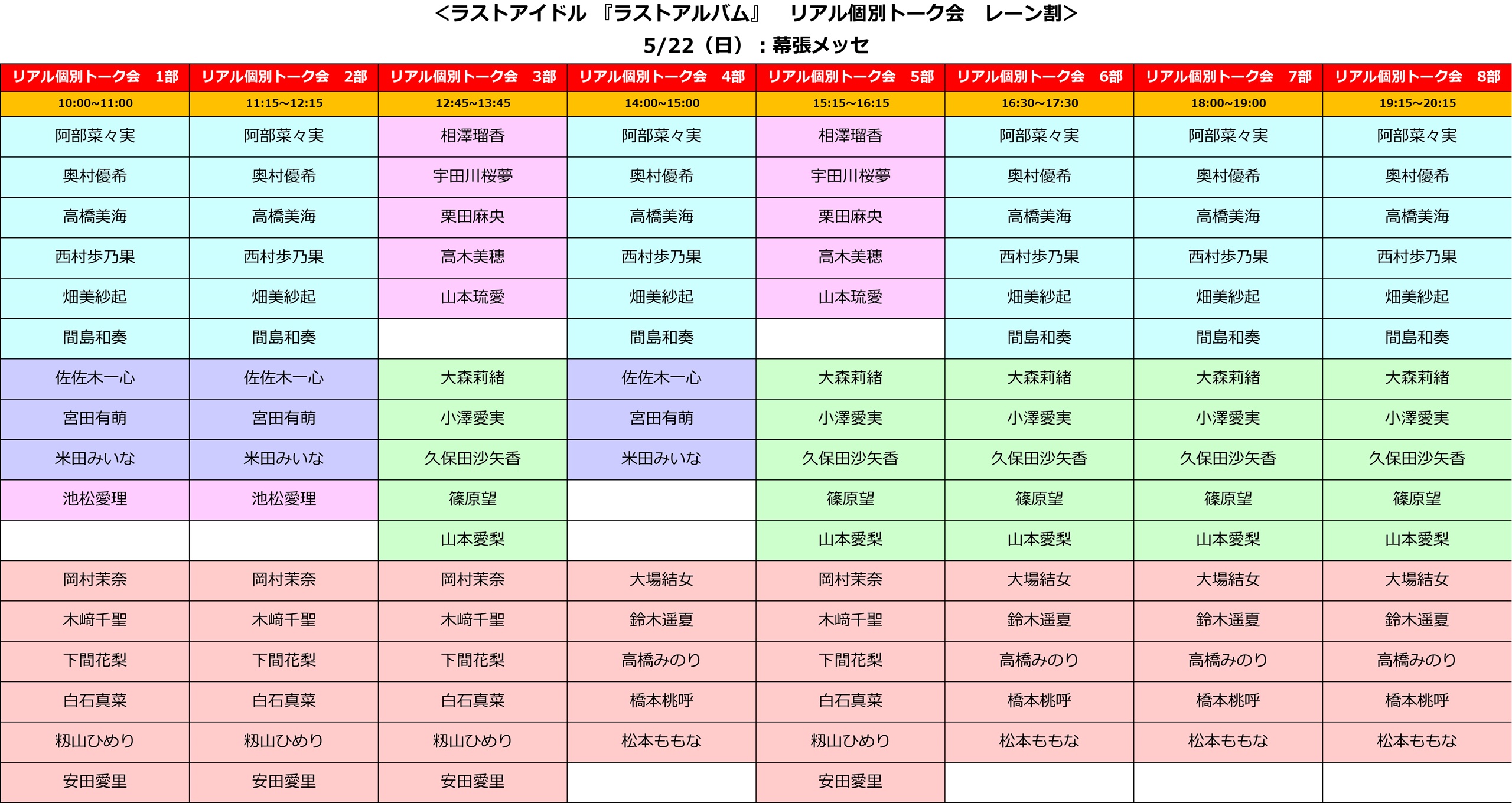 ラストアイドル 4/27発売1stアルバムWEB盤イベント “リアル個別トーク会” 開催のご案内 5/14(土)5/22(日)【11~16次販売のお知らせ】、追加開催分5/21(土)【追加の部のご案内】【4~9次販売のお知らせ】