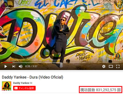 因みにダディー・ヤンキーの「デュラ」のミュージックビデオは再生回数8億回越え!