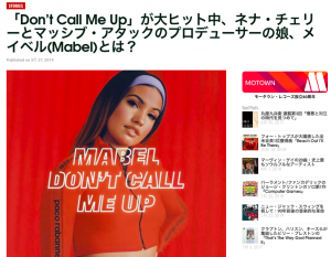 WEBメディア「uDiscoverMusic」にてメイベルの特集記事が掲載されました! 2019.03.29 MEDIA - WEB 洋楽やジャズについての音楽サイト「uDiscoverMusic」にてメイベルの特集記事が掲載されました。大ヒット曲「Don’t Call Me Up」を歌うメイベル自身の生い立ちについても詳しく紹介されています! https://www.udiscovermusic.jp/stories/who-is-mabel-of-daughter-neneh-cherry