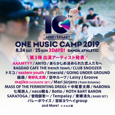 AAAMYYY / ANYO / あらかじめ決められた恋人たちへ / BAGDAD CAFE THE trench town /CLUB SNOOZER /ドミコ / eastern youth / Emerald / GOING UNDER GROUND / 箱庭 / 奇妙礼太郎 / 空中ループ /Lainy J Groove / majiko(Acoustic Set)/ Mari Jürjens(from Estonia) /MASS OF THE FERMENTING DREGS+中尾憲太郎 / NABOWA / 七尾旅人 / neco眠る / 8otto / ROTH BART BARON / SARATOGA / 曽我部恵一 / Tempalay / 東郷清丸(Band set) / バレーボウイズ / 吉田ヨウヘイgroup / and more!! (A to Z)