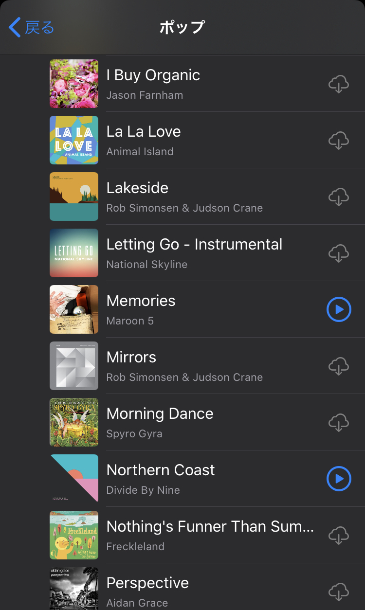 ⑩ ABC順に並んでいる候補曲からMaroon5「Memories」を選択
