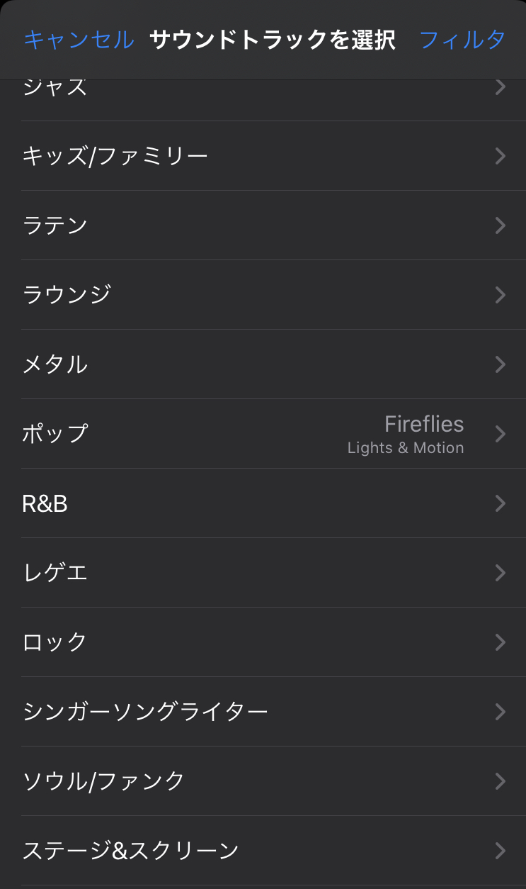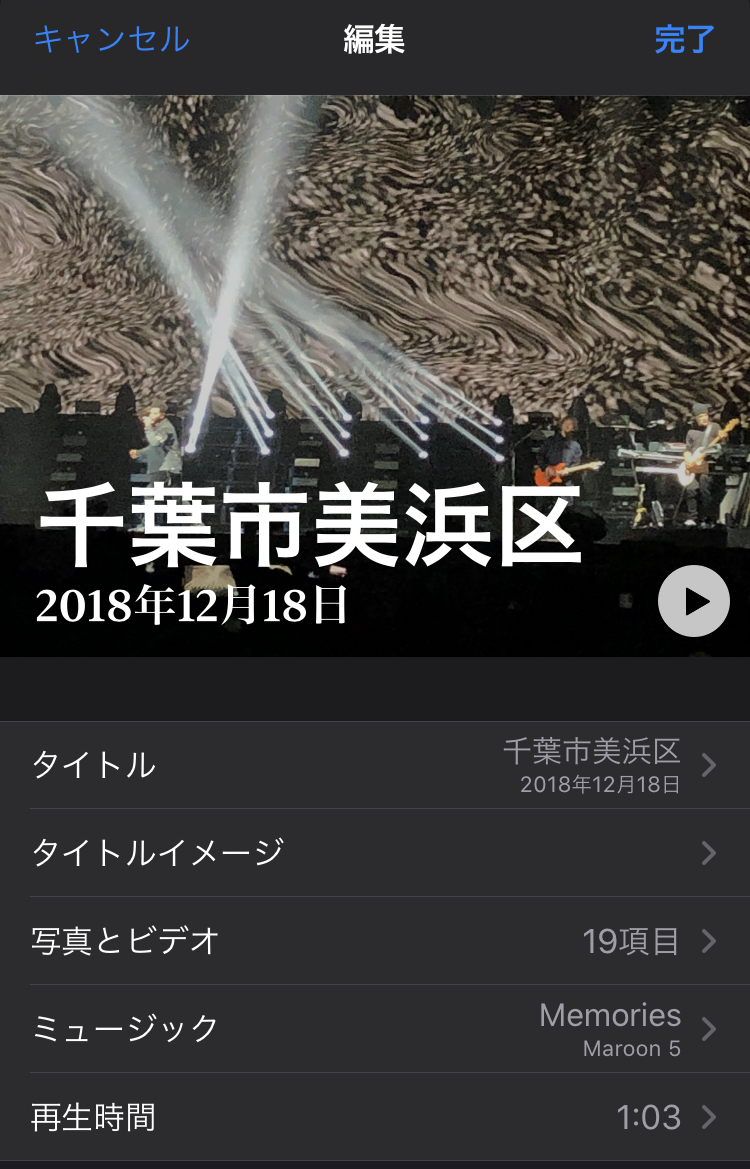 ⑪ 「戻る」をタップし、右上の「完了」を押せばBGMがマルーン5「メモリーズ」に設定されています