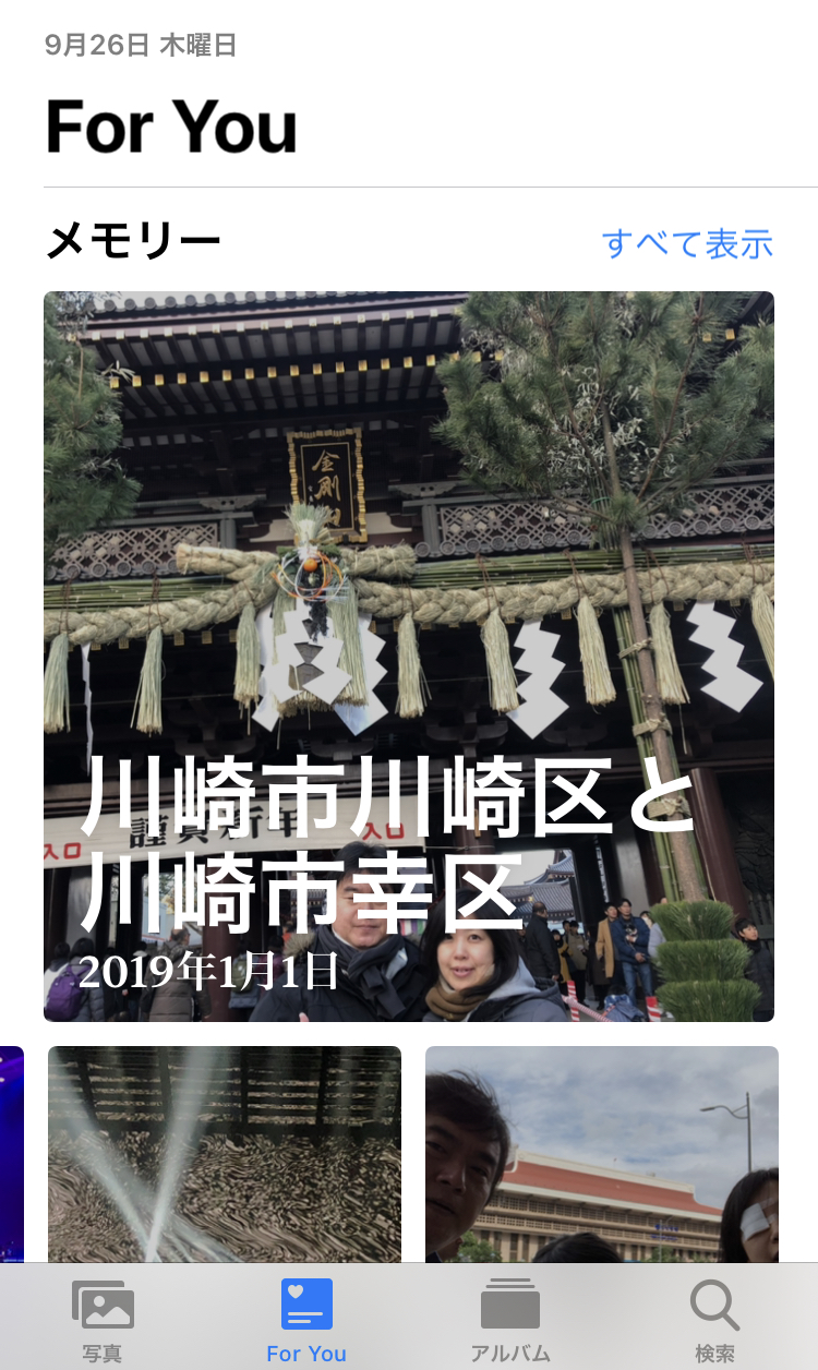 ③ 「メモリー」というサービスが立ち上がり候補の写真グループが並ぶので好きなものを選択。