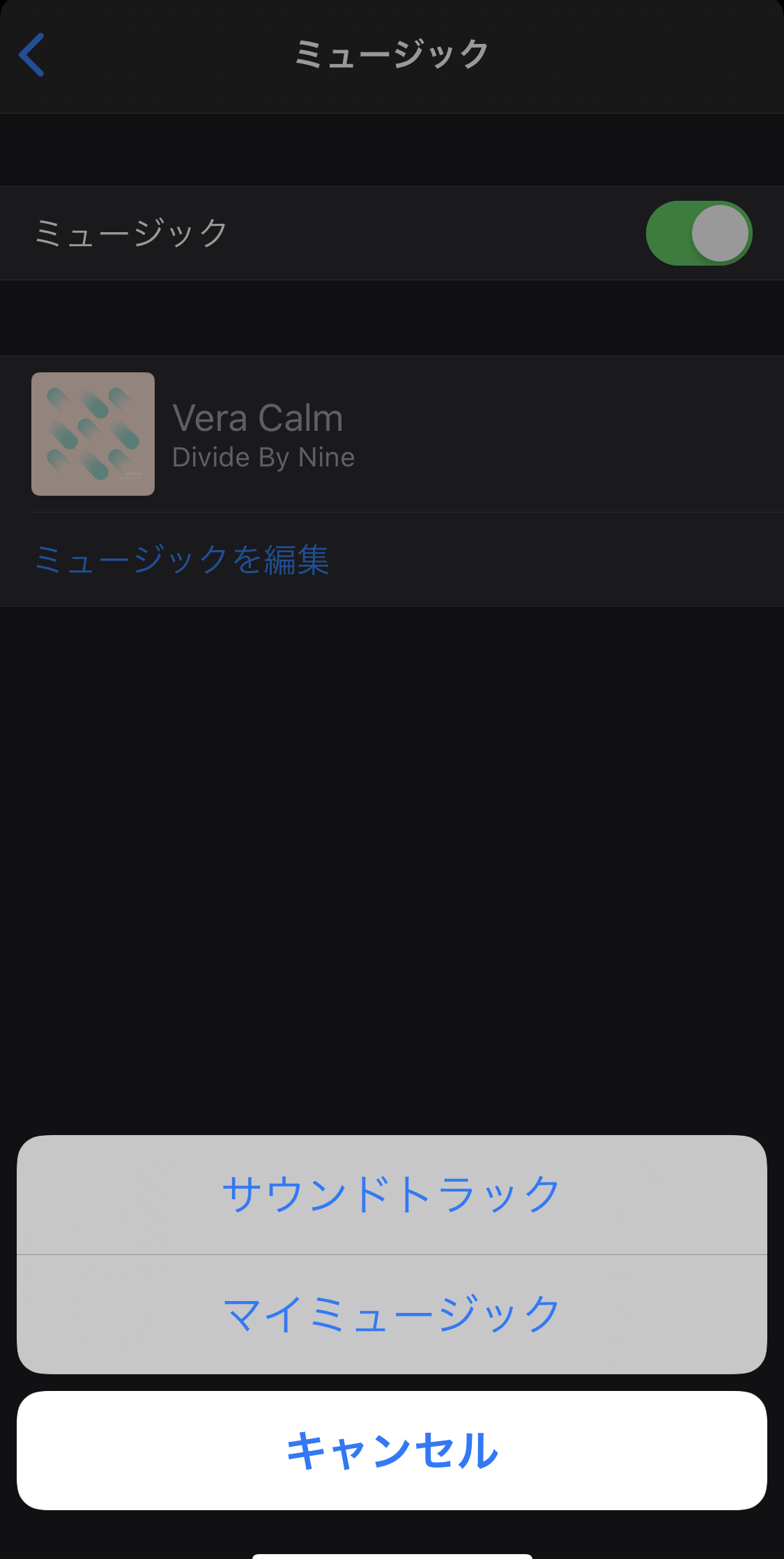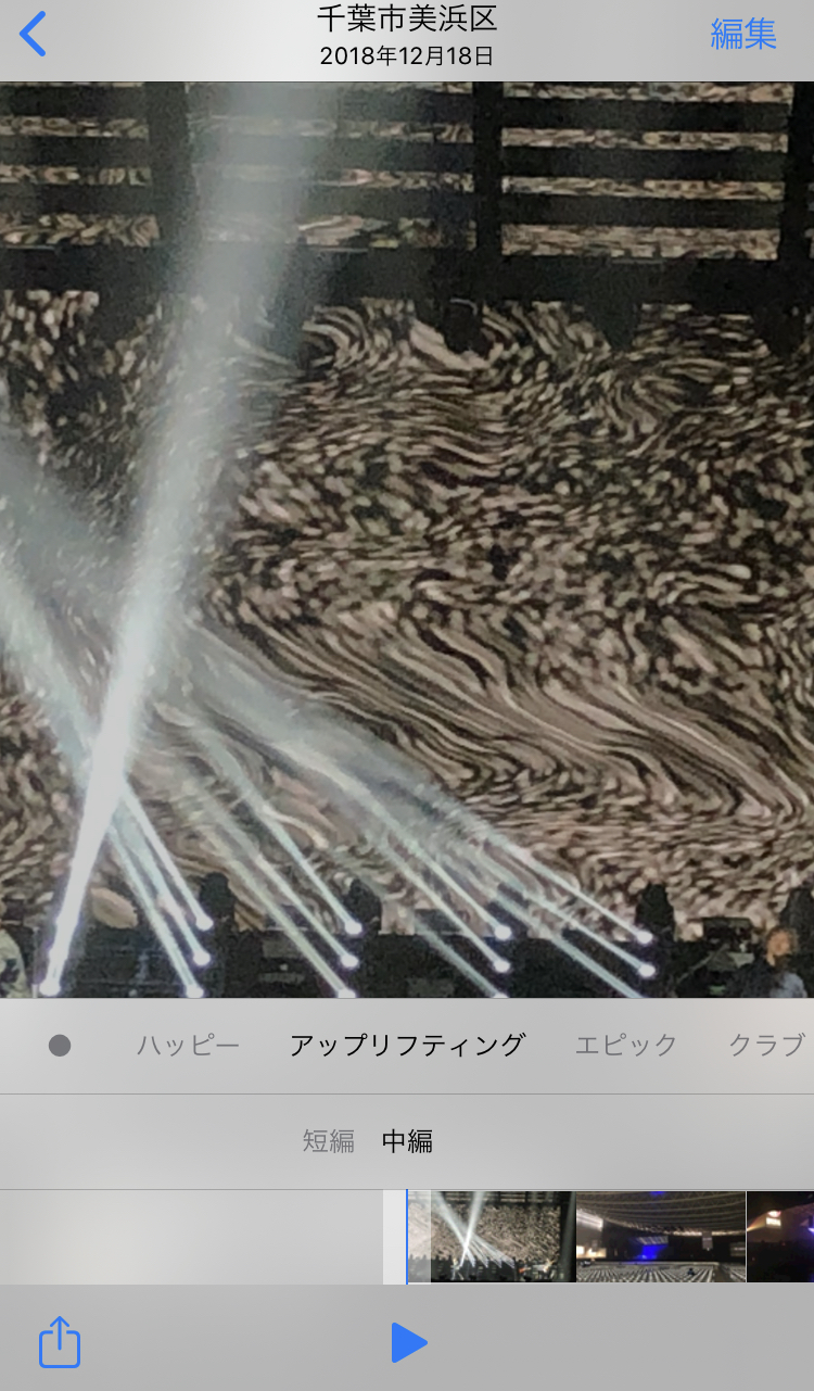 ⑤ 予め自動で選ばれた音楽がBGMに設定されているので右上の「編集」をタップ
